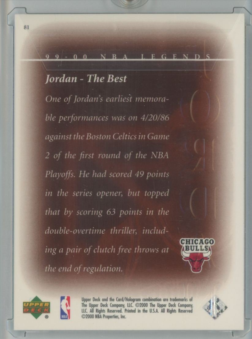 2000 Upper Deck NBA Legends Michael Jordan 81 card from the Chicago Bulls.