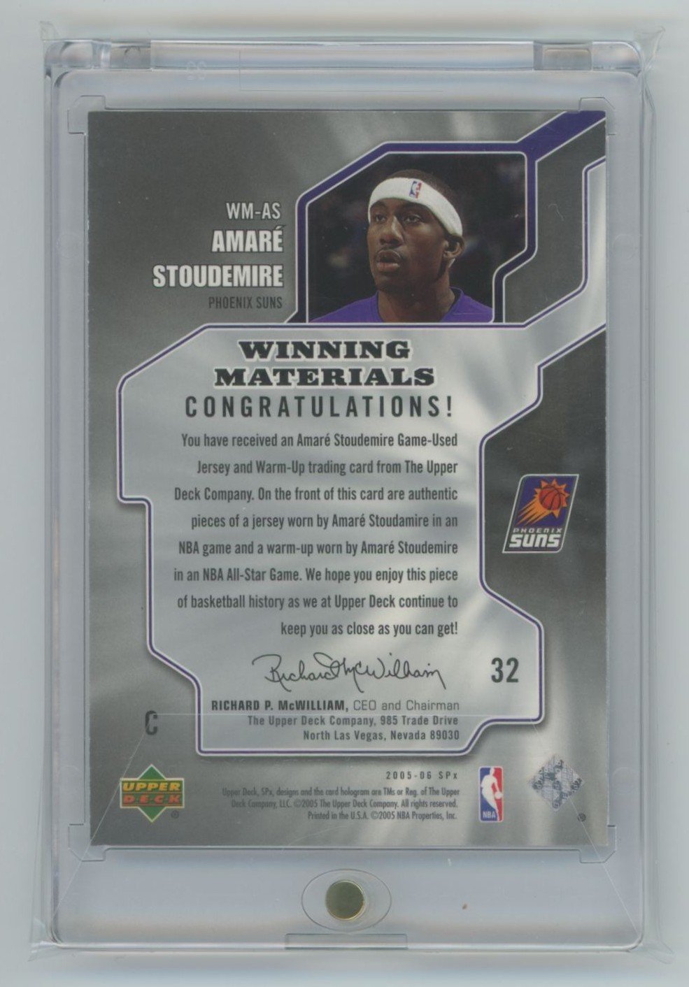 2005 Upper Deck SPx Winning Materials Amare Stoudemire WM-AS card from the Phoenix Suns.