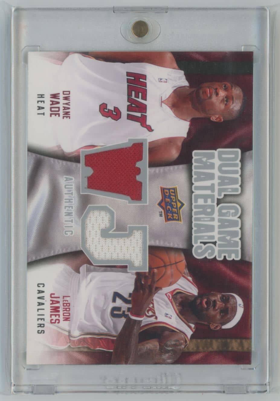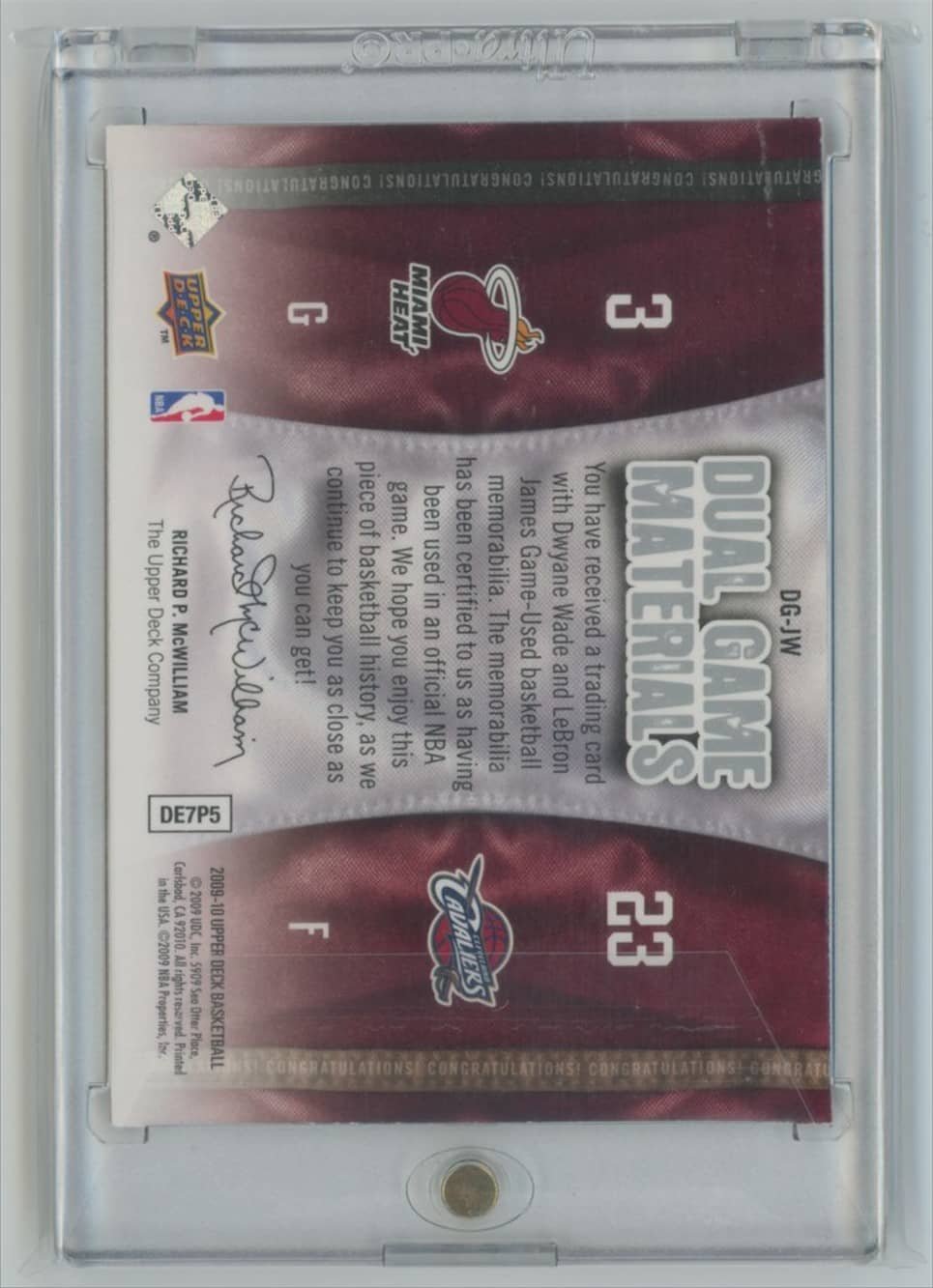 2009 Upper Deck Dual Game Materials LeBron James/Dwayne Wade DG-JW featuring LeBron James/Dwayne Wade from the Cleveland Cavaliers/Miami Heat. Card #DG-JW.
