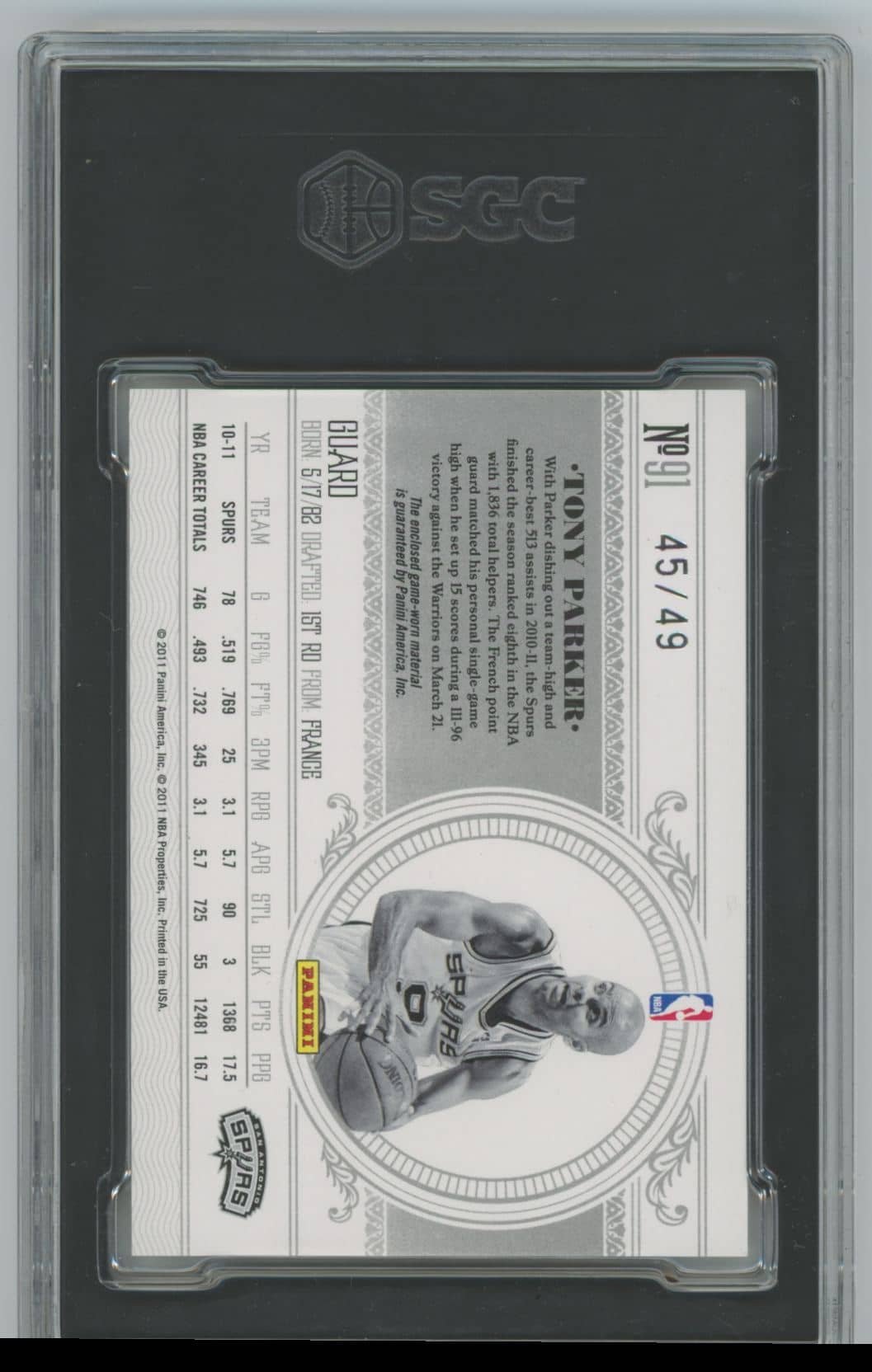 2010 Panini National Playoffs Treasures Tony Parker 91 autographed sgc 9.5 45/49 quantity