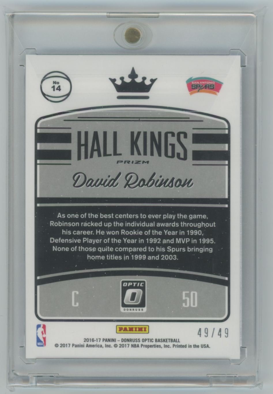 2016 Donruss Optic Hall Kings Blue David Robinson 14 49/49 card from the San Antonio Spurs.