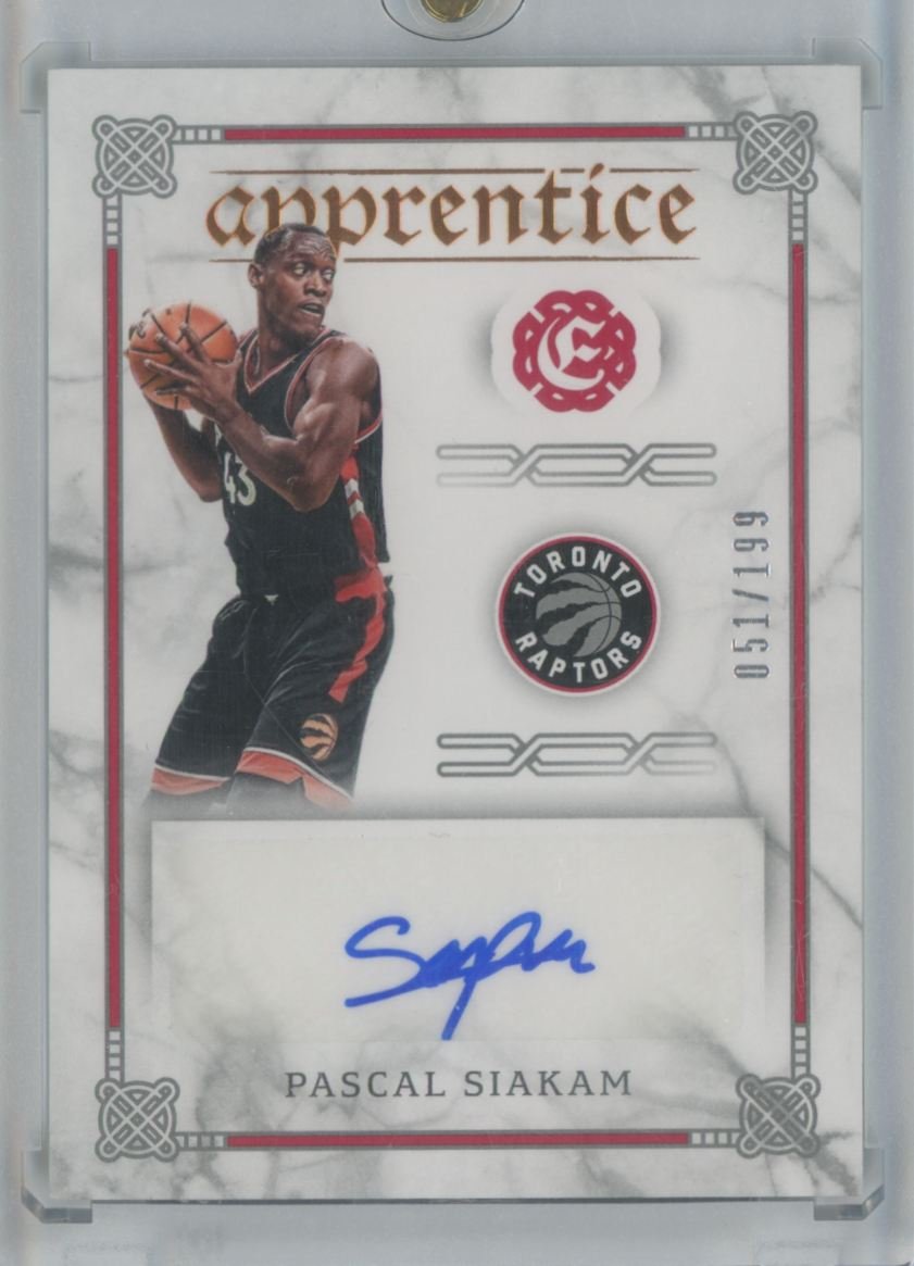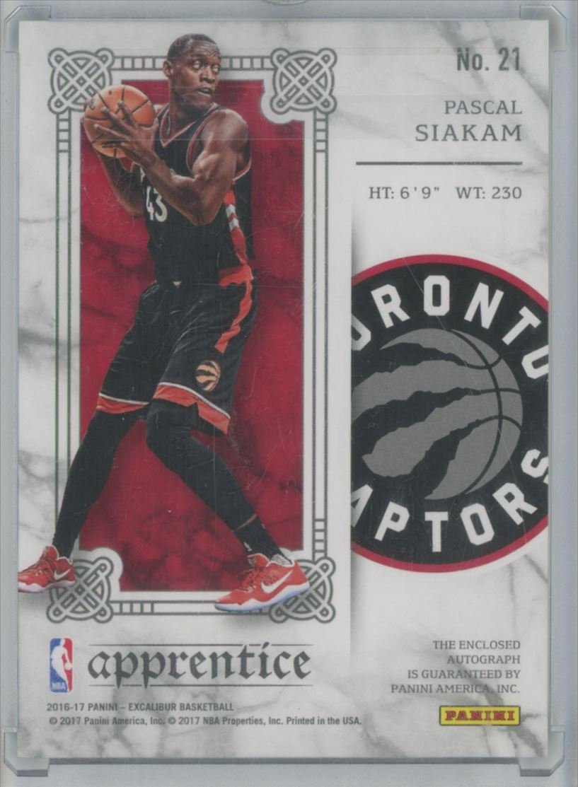 2016 Panini Excalibur Apprentice Signatures Pascal Siakam 21 autographed 051/199 card from the Toronto Raptors.