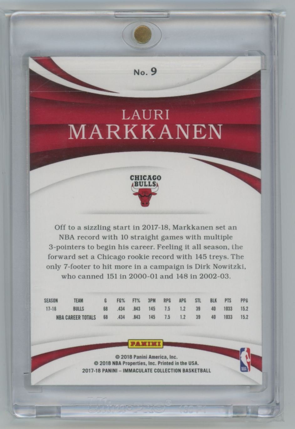 2017 Panini Immaculate Gold Lauri Markkanen 9 rookie 10/10