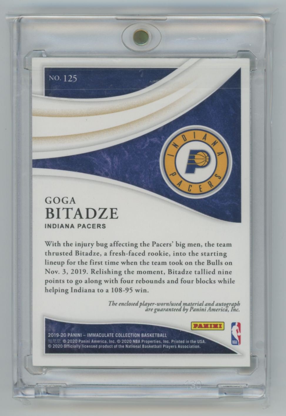 2019 Panini Immaculate Collection Goga Bitadze 125 rookie autographed 22/88 card from the Indiana Pacers.