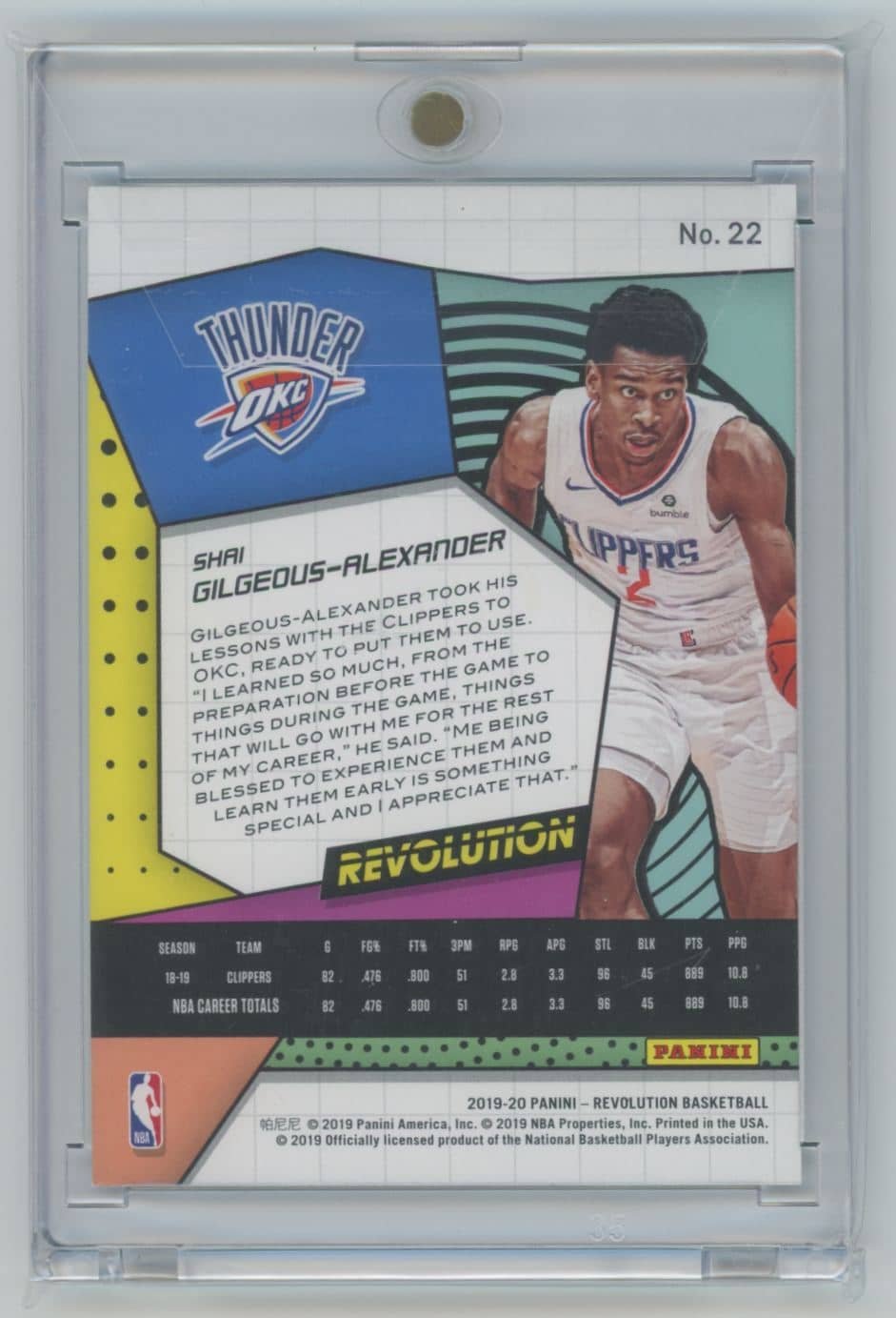 2019 Panini Revolution Shai Gilgeous Alexander 22 card from the Los Angeles Clippers.