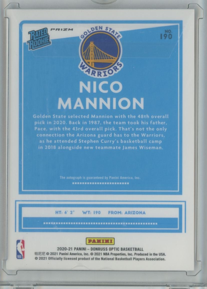2020 Donruss Optic Rated Rookies Signatures Nico Mannion 190 autographed card from the Golden State Warriors.