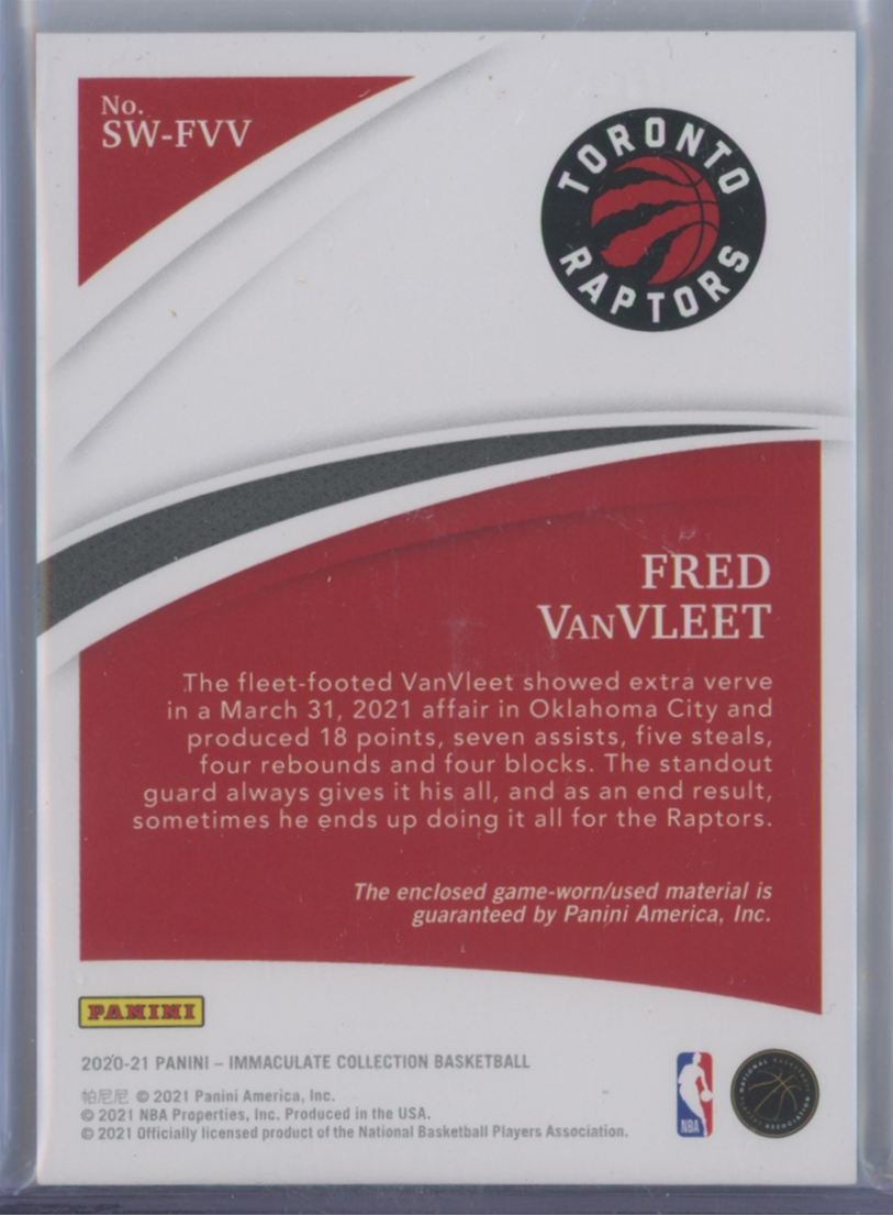 2020 Panini Immaculate Collection Fred VanVleet SW-FVV 78/99 featuring Fred VanVleet from the Toronto Raptors. Card #SW-FVV.