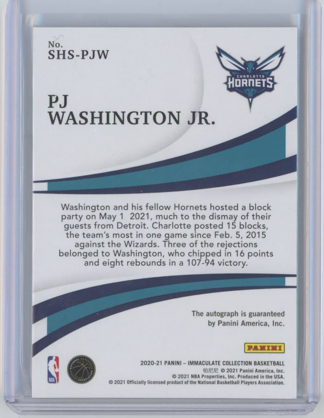 2020 Panini Immaculate Collection Shadowbox Signatures PJ Washington Jr. SHS-PJW autographed 88/99 featuring PJ Washington Jr. from the Charlotte Hornets. Card #SHS-PJW.