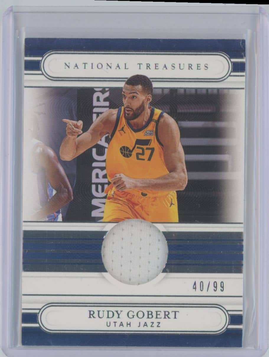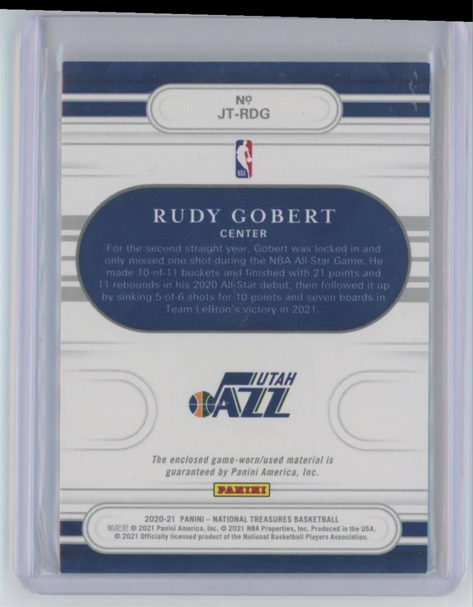 2020 Panini National Treasures Jersey Rudy Gobert JT-RDG 40/99 featuring Rudy Gobert from the Utah Jazz. Card #JT-RDG.