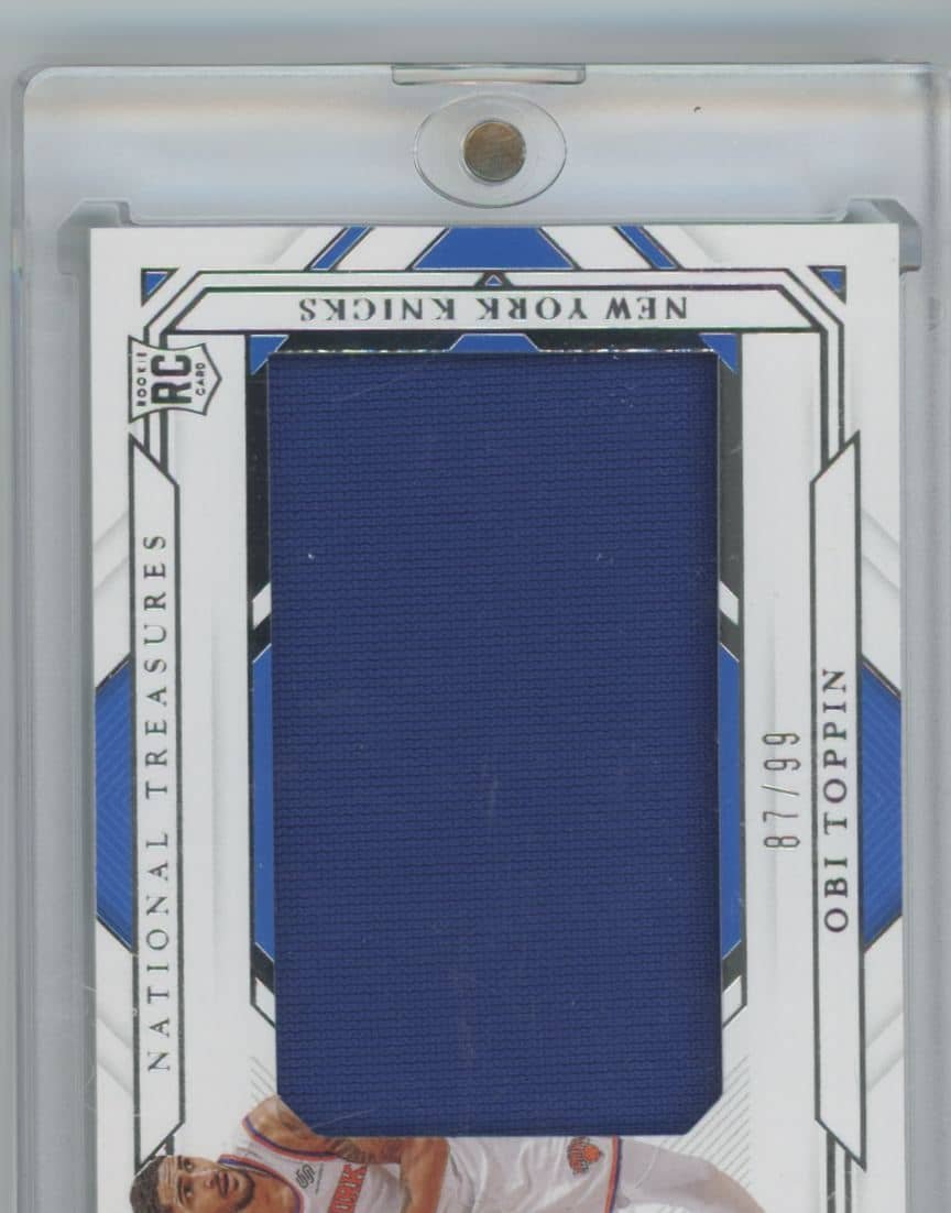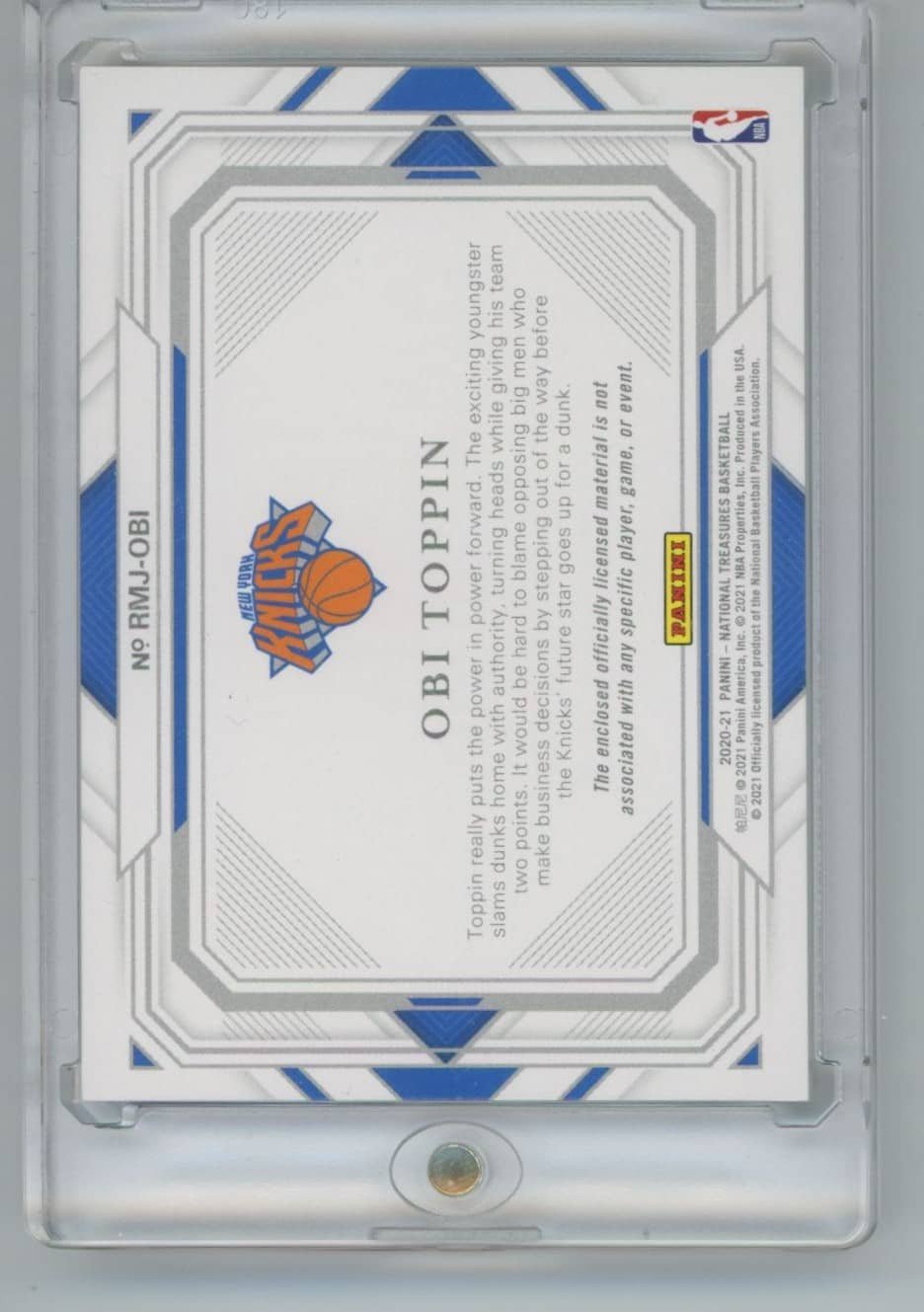 Obi Toppin 2020 Panini National Treasures Obi Toppin RMJ-OBI 87/99 featuring the New York Knicks. Card #RMJ-OBI Serial 87/99