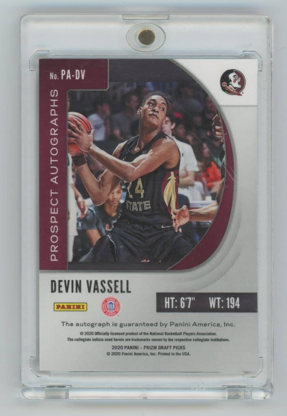2020 Panini Prizm Draft Picks Devin Vassell PA-DV rookie autographed featuring Devin Vassell from the San Antonio Spurs. Card #PA-DV.