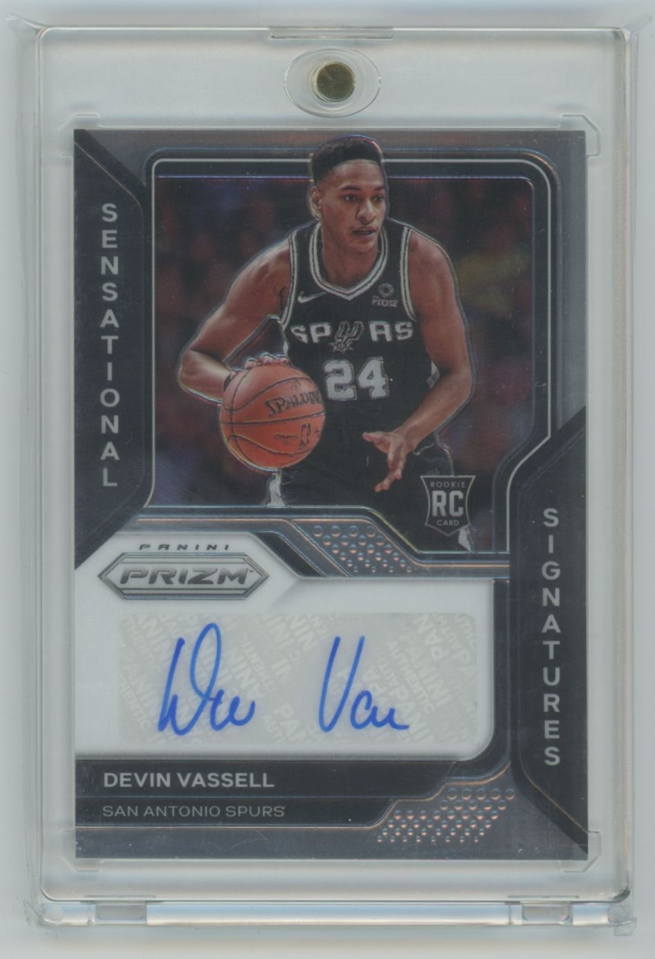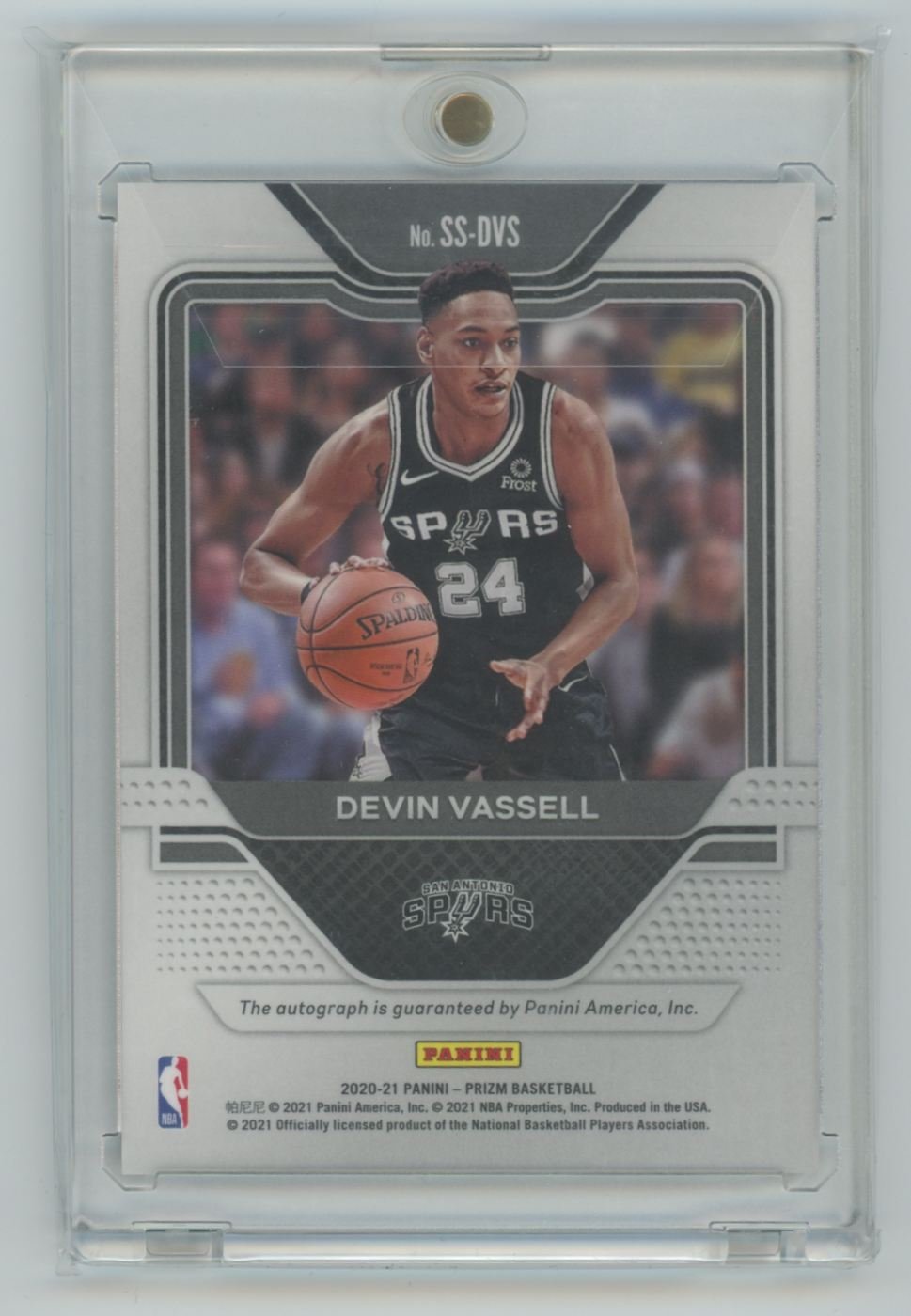 2020 Panini Prizm Sensational Signatures Devin Vassell SS-DVS rookie autographed card from the San Antonio Spurs.