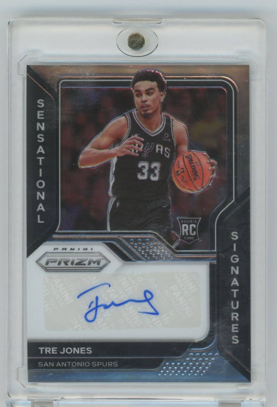 2020 Panini Prizm Sensational Signatures Tre Jones SS-TJN rookie autographed featuring Tre Jones from the San Antonio Spurs. Card #SS-TJN.