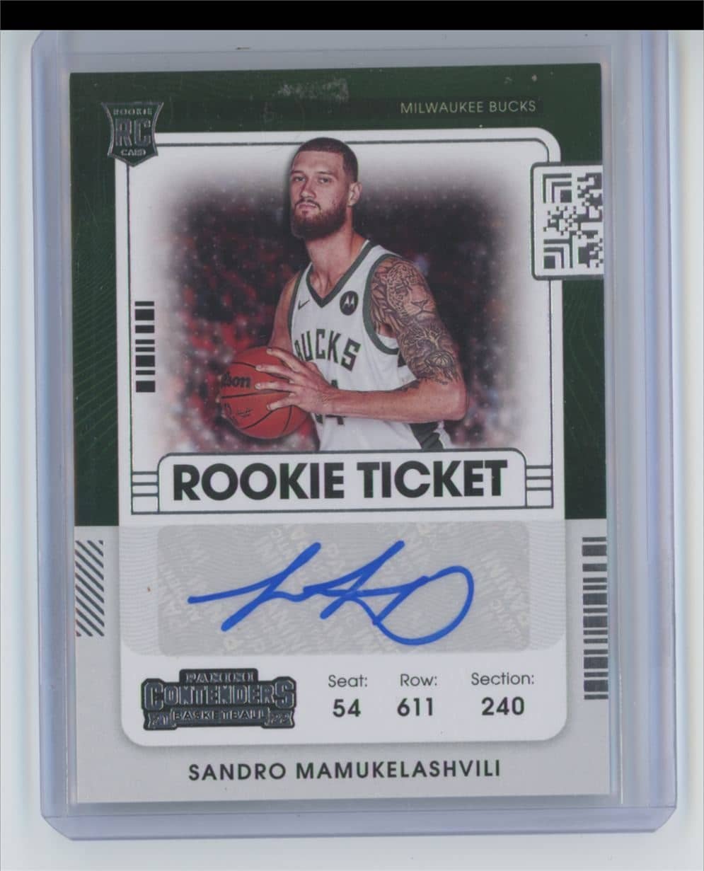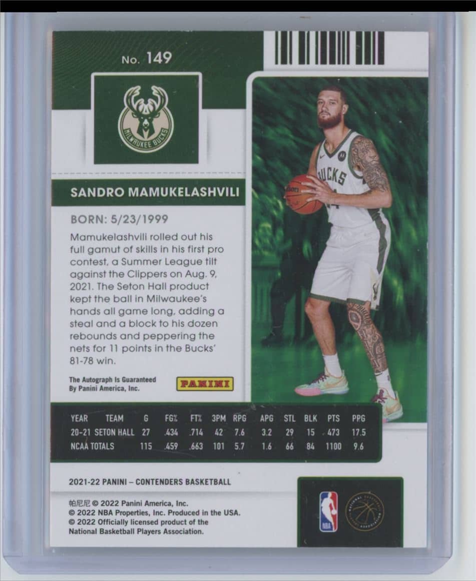 2021 Panini Contenders Rookie Season Ticket Sandro Mamukelashvili 149 rookie autographed featuring Sandro Mamukelashvili from the Milwaukee Bucks. Card #149.