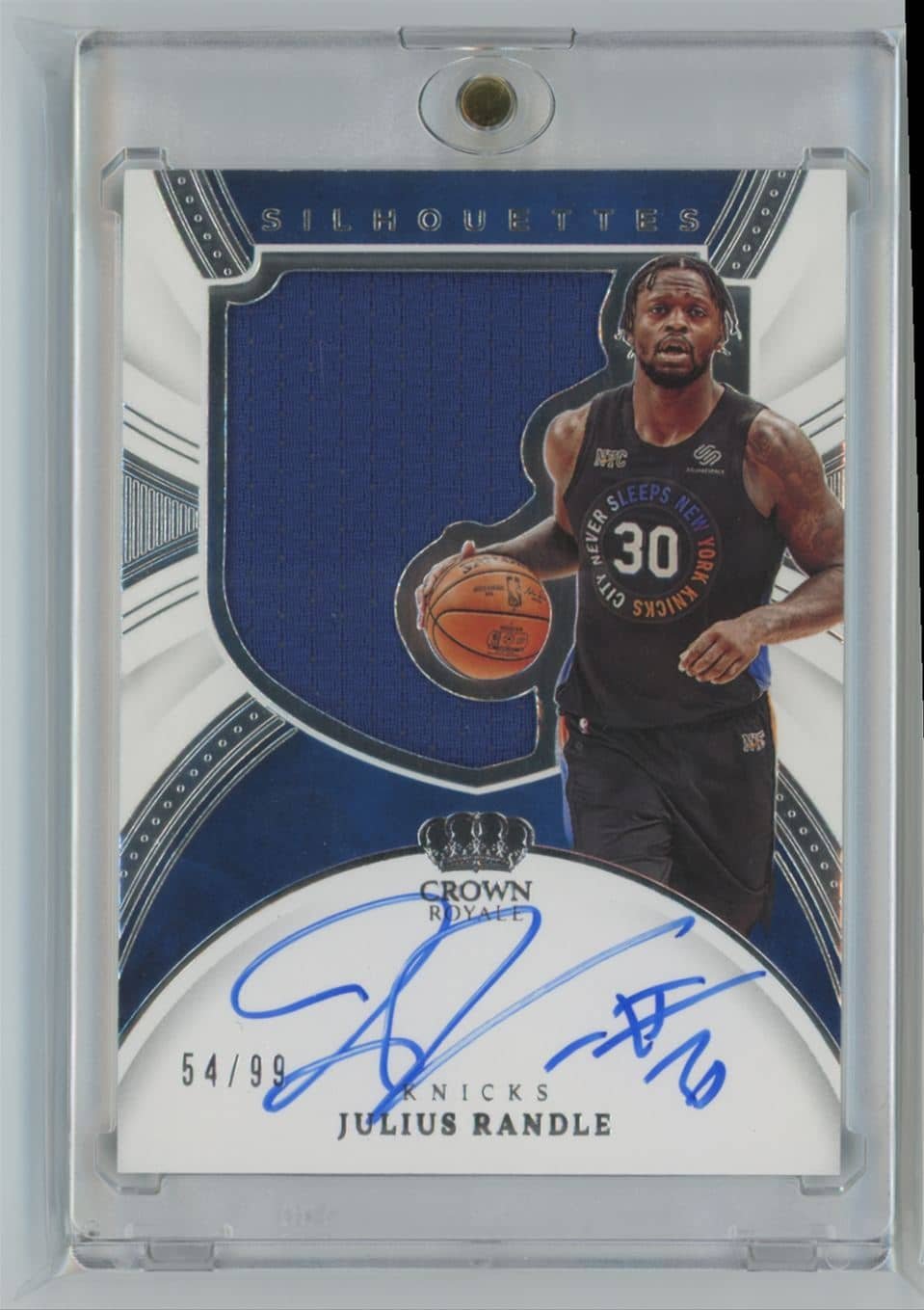 2021 Panini Crown Royale Silhouettes Julius Randle SL-JRD autographed 54/99 featuring Julius Randle from the New York Knicks. Card #SL-JRD.