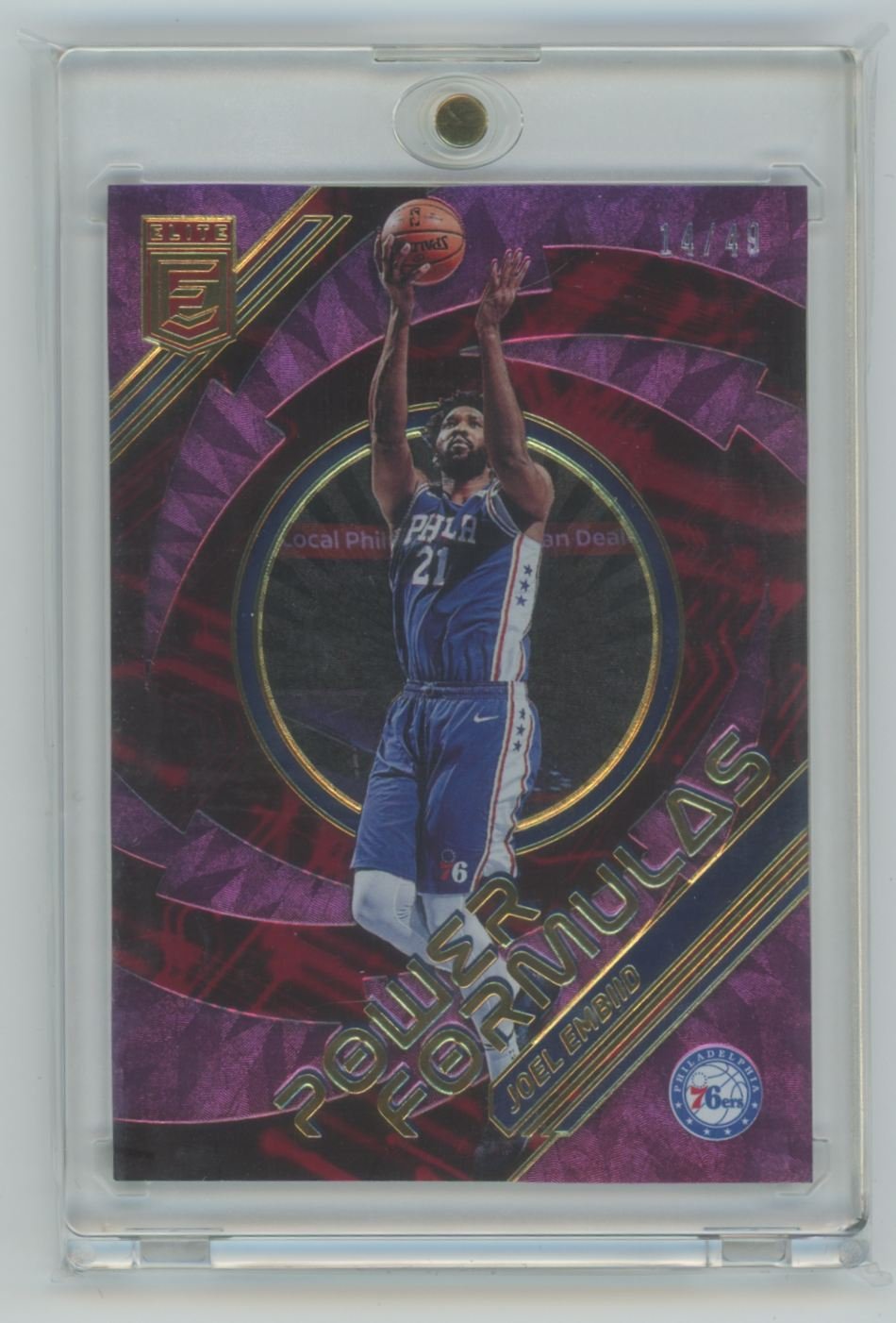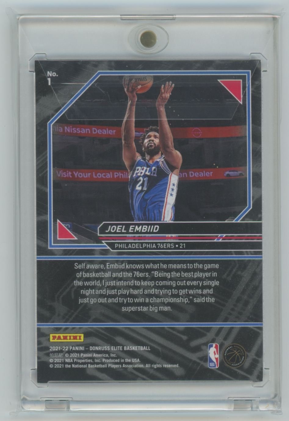 2021 Panini Donruss Elite Joel Embiid 1 14/49 card from the Philadelphia 76ers.