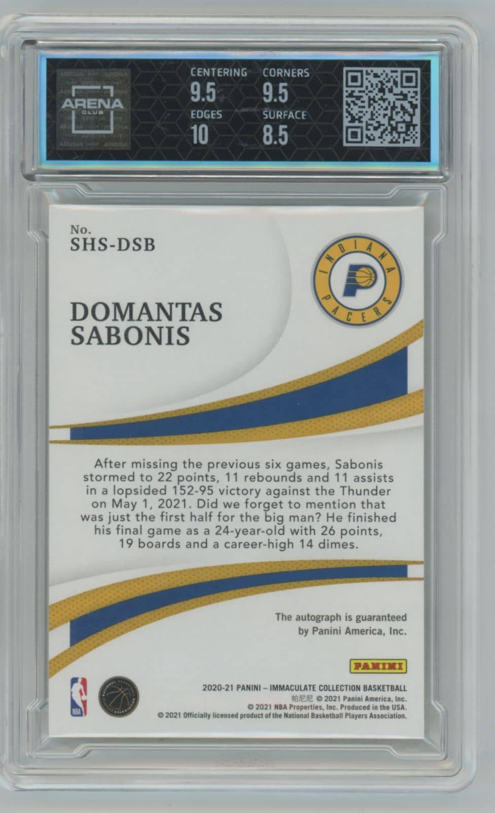 Domantas Sabonis | Panini Immac. Shadow Box Sigs. | 2021 | #SHA-DSB ARENA 9 | 42 /49