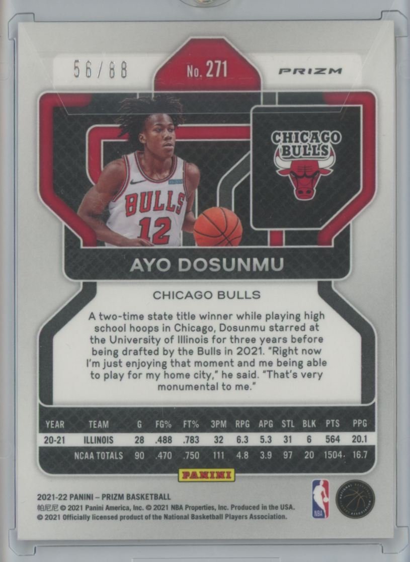 2021 Panini Prizm Choice Red Ayo Dosunmu 271 rookie 56/88 card from the Chicago Bulls.