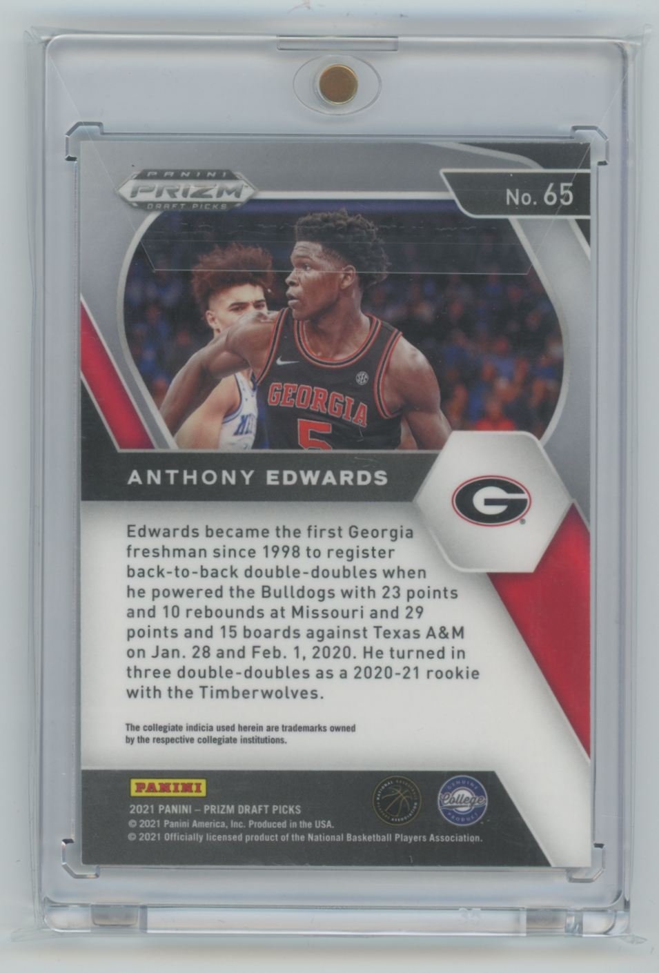 2021 Panini Prizm Draft Picks Anthony Edwards 65 card from the Georgia Bulldogs.
