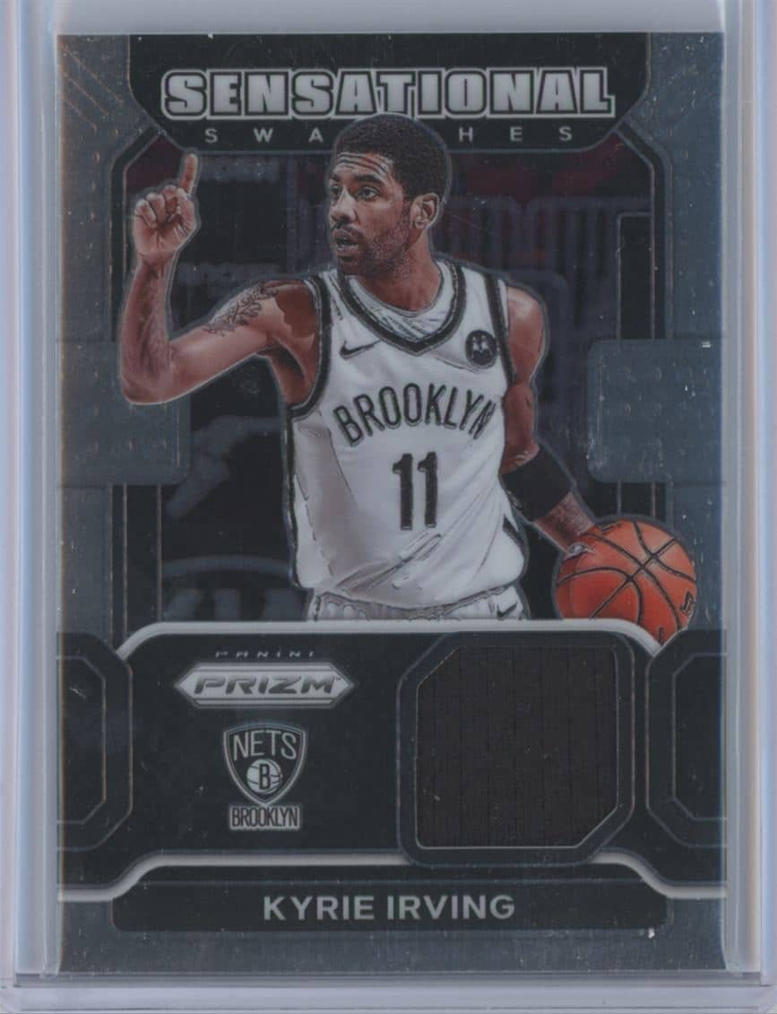 2021 Panini Prizm Sensational Swatches Kyrie Irving SW-KIV featuring Kyrie Irving from the Brooklyn Nets. Card #SW-KIV.