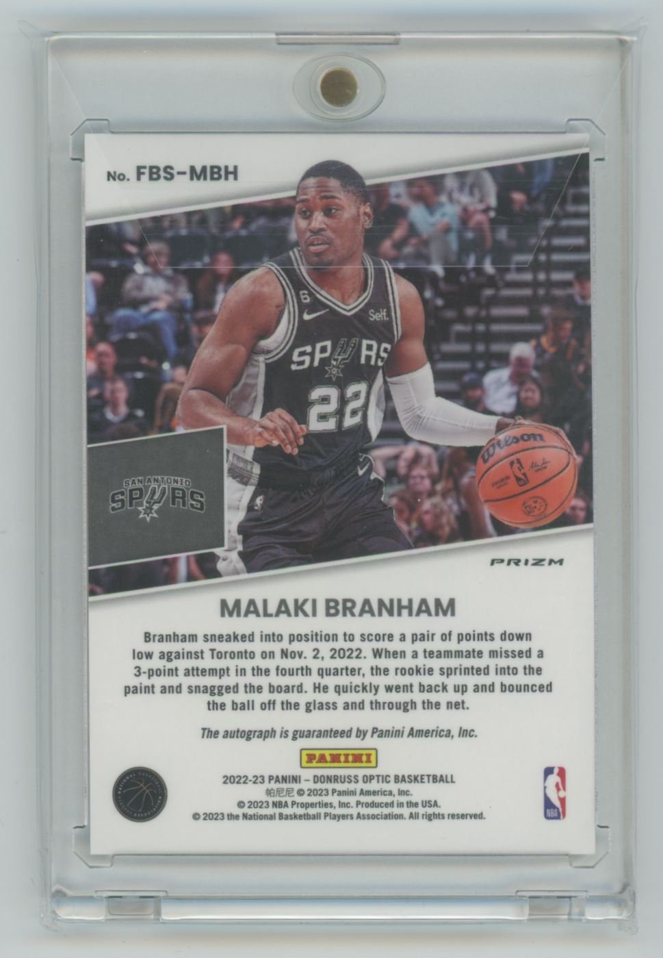 2022 Donruss Optic Fast Break Signatures Malaki Branham FBS-MBH autographed card from the San Antonio Spurs.