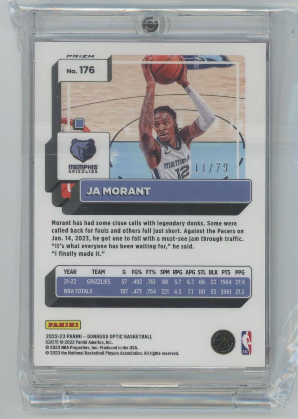 Ja Morant 2022 Donruss Optic Pink Velocity Ja Morant 176 11/79 featuring the Memphis Grizzlies. Card #176 Serial 11/079