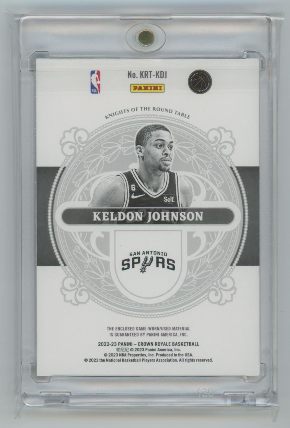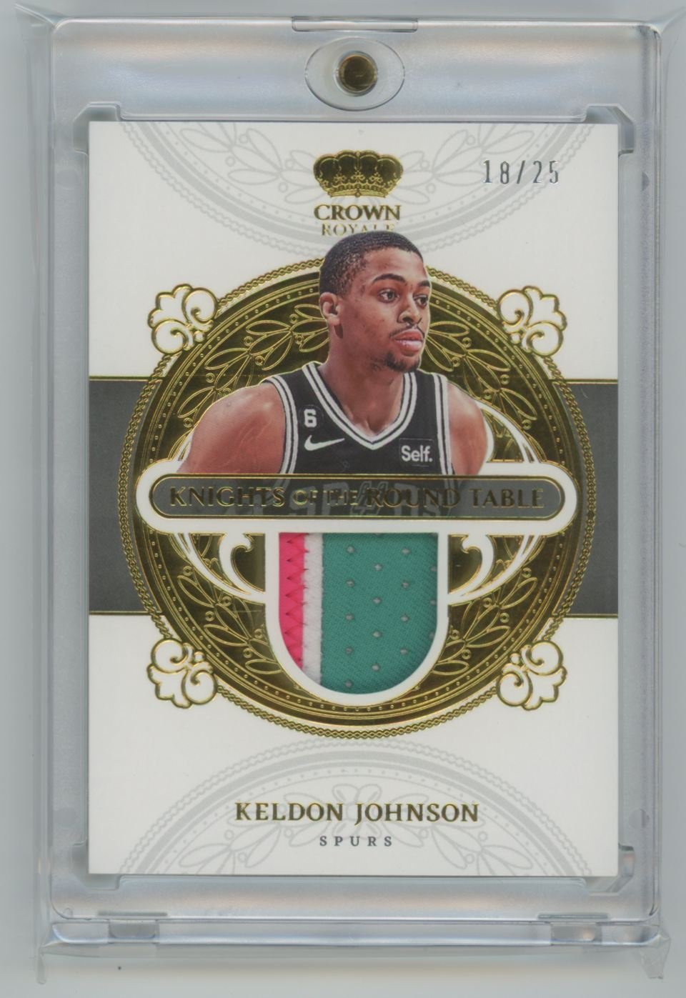 2022 Panini Crown Royale Knights of the Round Table Prime Keldon Johnson KRT-KDJ 18/25 card from the San Antonio Spurs.