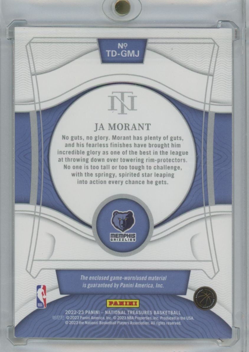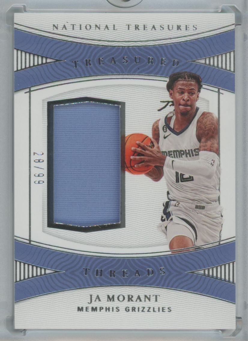 2022 Panini National Treasures Treasured Threads Ja Morant TD-GMJ 28/99 card from the Memphis Grizzlies.