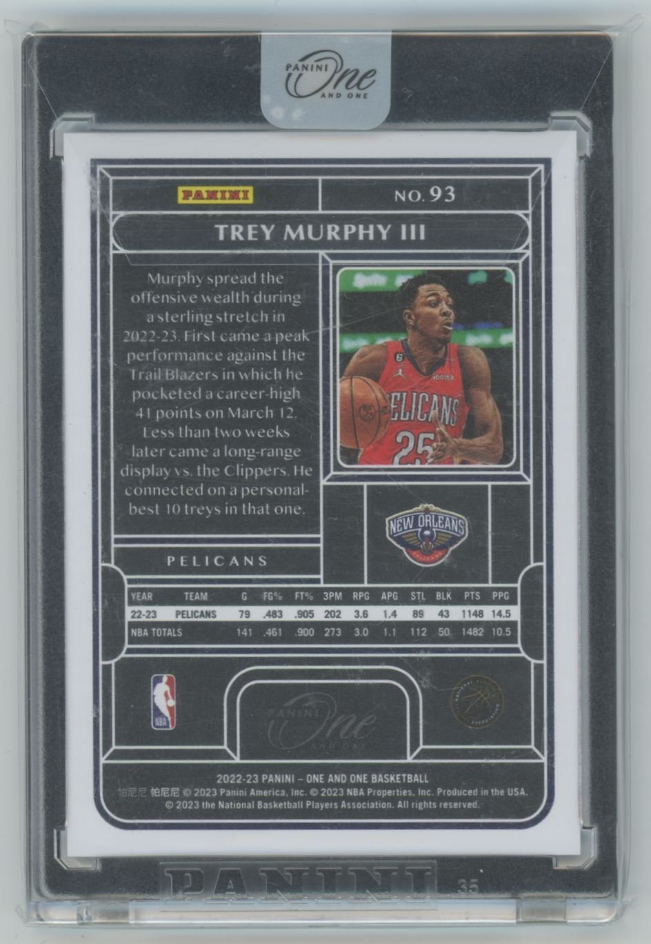 2022 Panini One and One Trey Murphy III 93 21/40 card from the New Orleans Pelicans.
