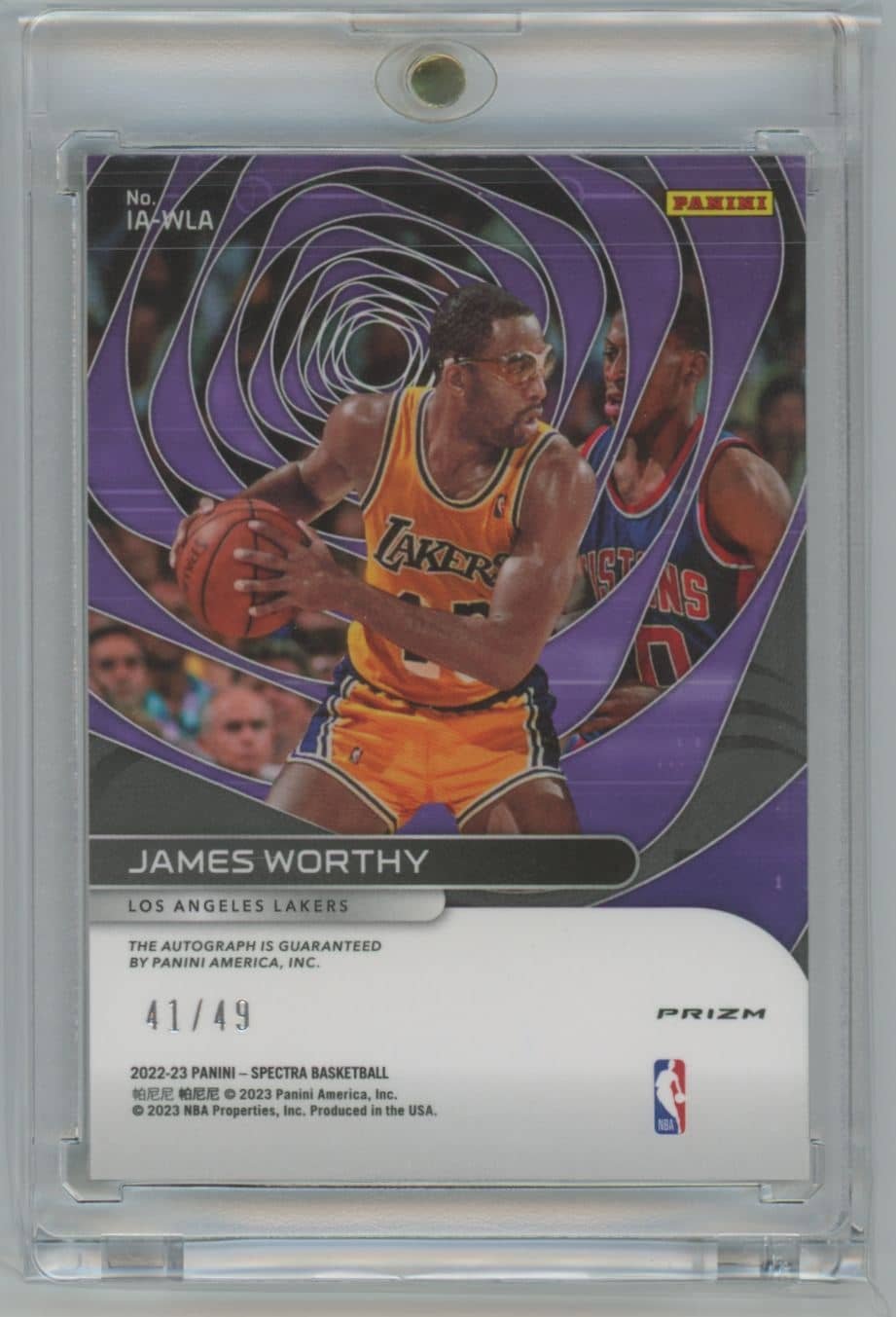 2022 Panini Spectra Icons Autographs Astral James Worthy IA-WLA autographed 41/49 featuring James Worthy from the Los Angeles Lakers. Card #IA-WLA.