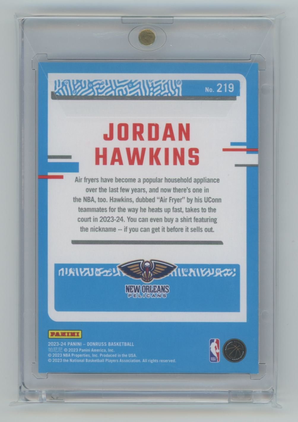 2023 Donruss Jordan Hawkins 219 rookie 80/88 card from the New Orleans Pelicans.