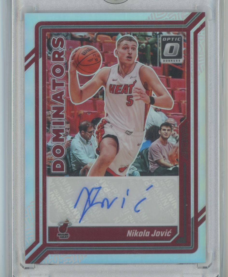 2023 Donruss Optic Dominators Nikola Jovic DS-JOV 71/99 card from the Miami Heat.