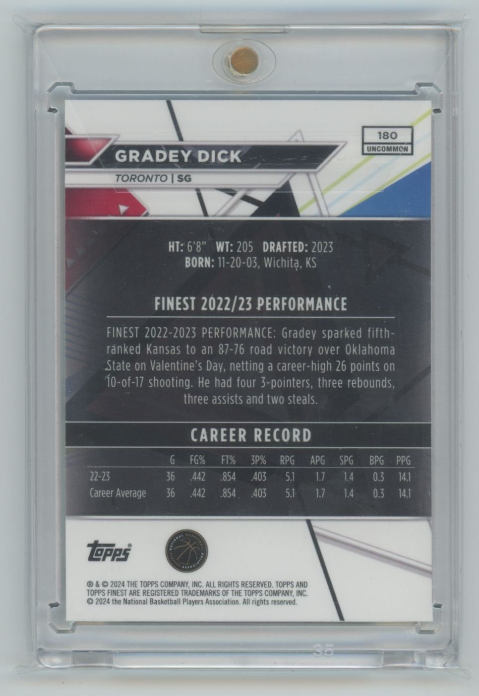 2023 Finest Gradey Dick 180 rookie card from the Toronto Raptors.