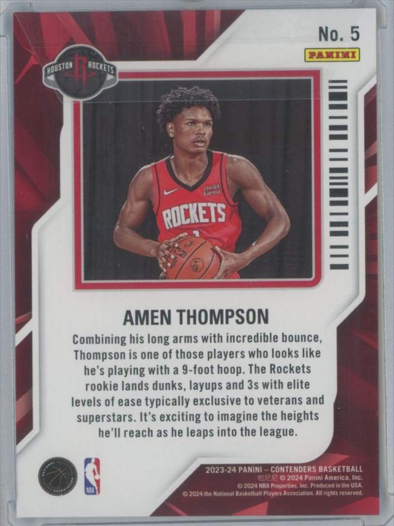 2023 Panini Contenders Amen Thompson 5 card from the Houston Rockets.