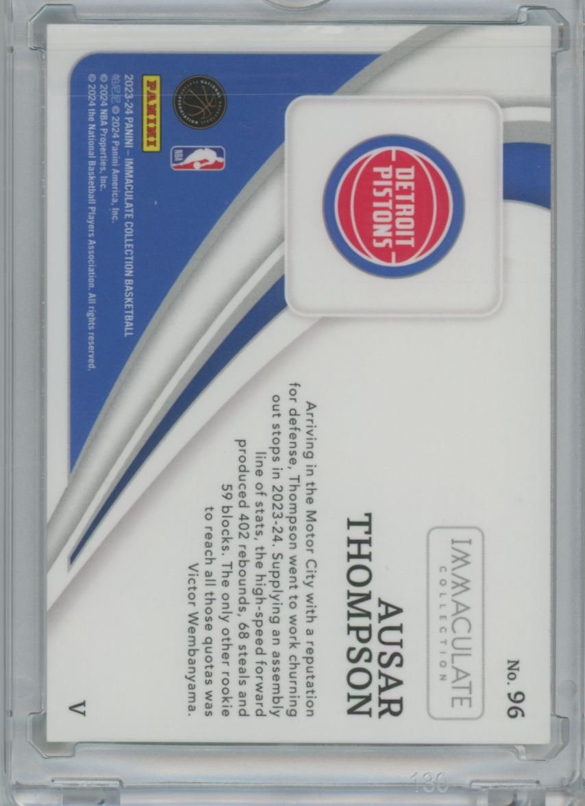 2023 Panini Immaculate Collection Ausar Thompson 96 rookie 62/75 card from the Detroit Pistons.