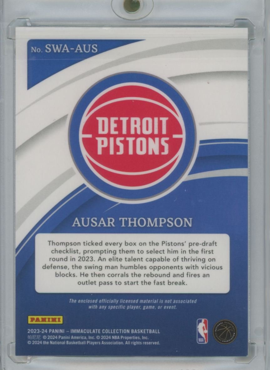 2023 Panini Immaculate Collection Ausar Thompson SWA-AUS rookie 86/99 card from the Detroit Pistons.