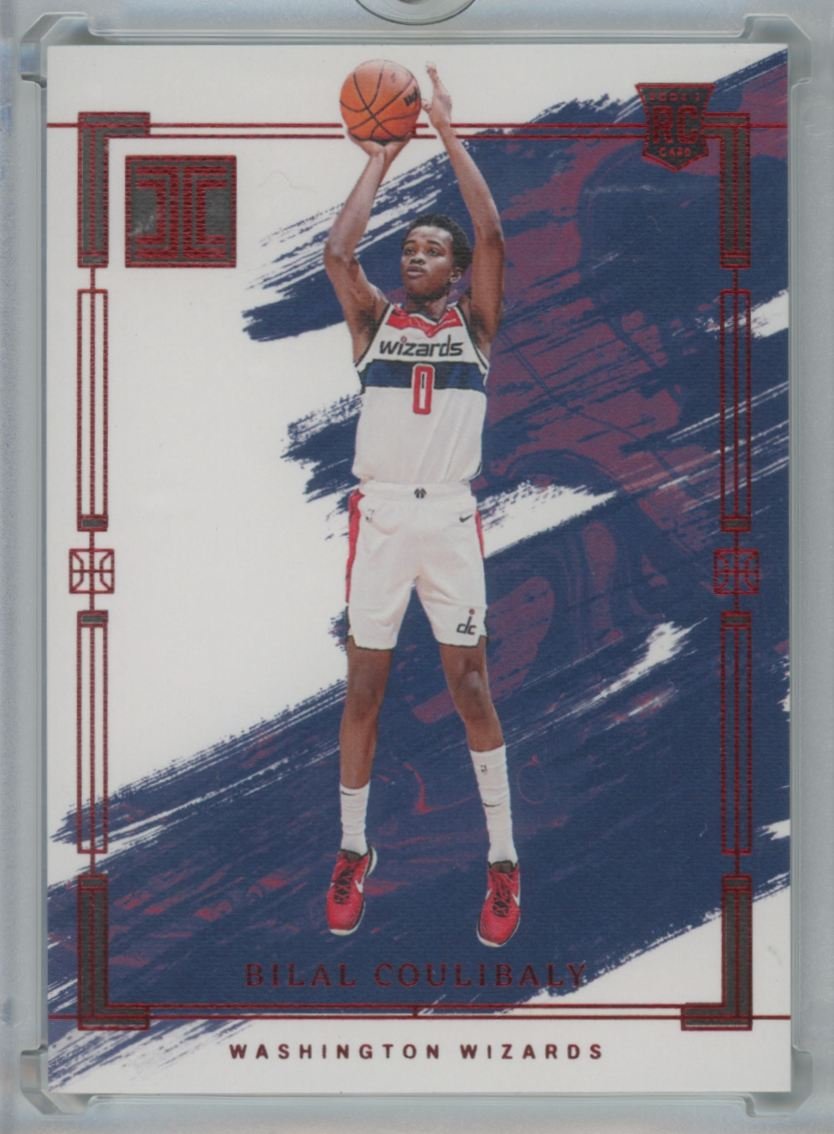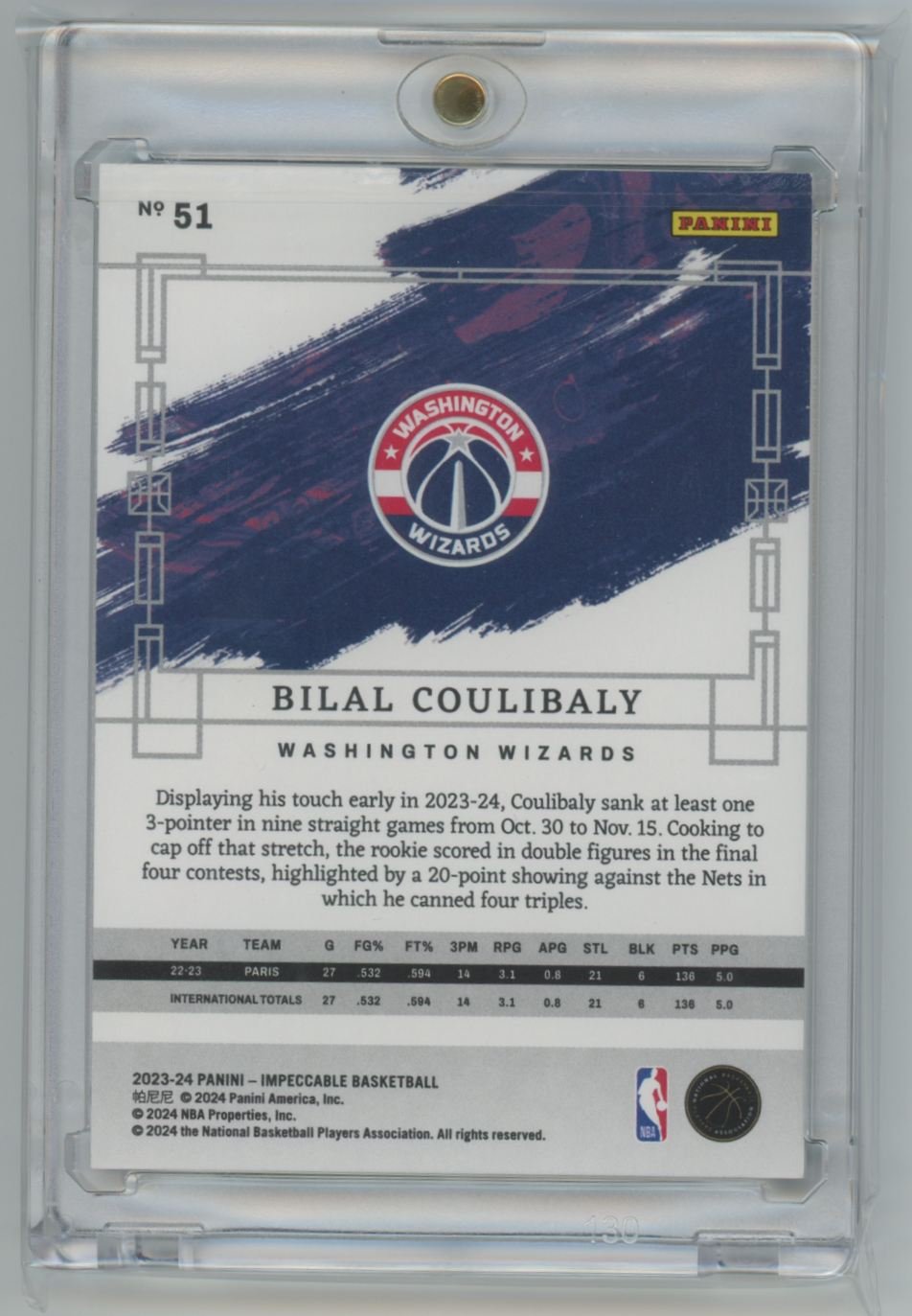 2023 Panini Impeccable International Red Bilal Coulibaly 51 rookie card from the Washington Wizards.