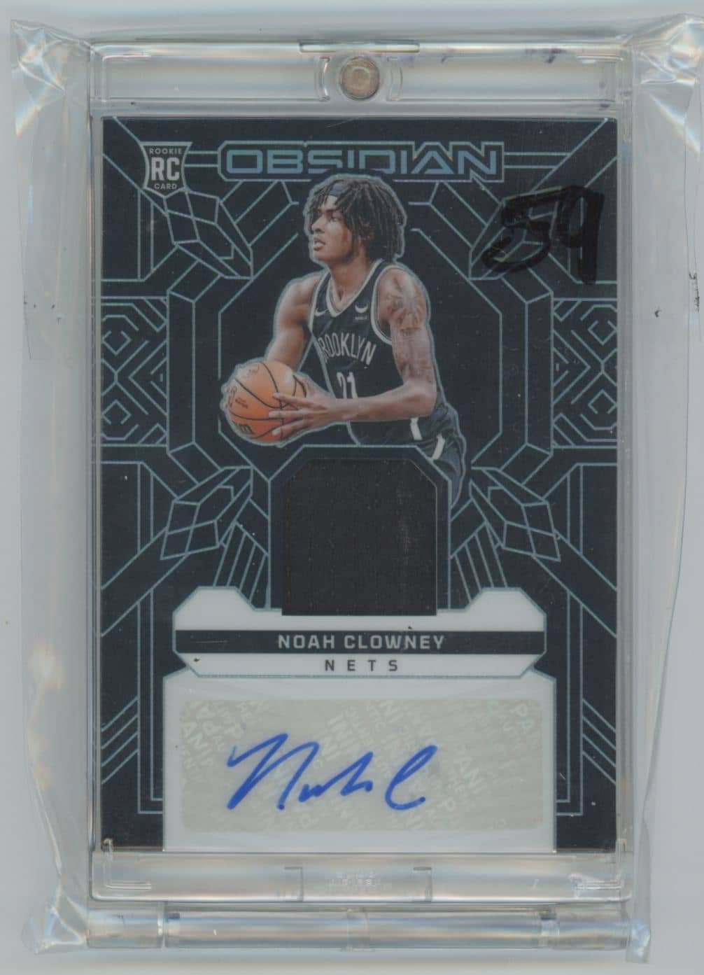 Noah Clowney 2023 Panini Obsidian Noah Clowney RJI-CWY rookie autographed 68/99 featuring the Brooklyn Nets. Card #RJI-CWY Serial 68/99
