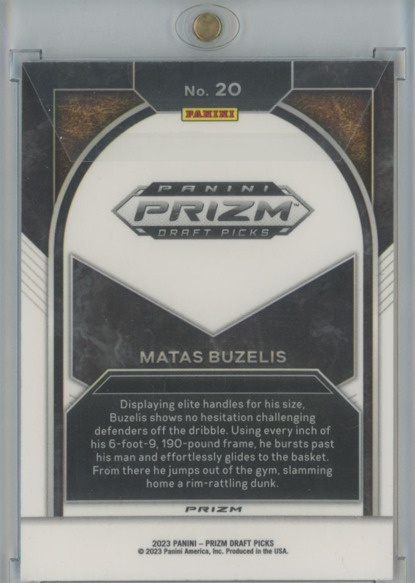 2023 Panini Prizm Draft Picks Brilliance Matas Buzelis 20 rookie card from the NBA G League Ignite.