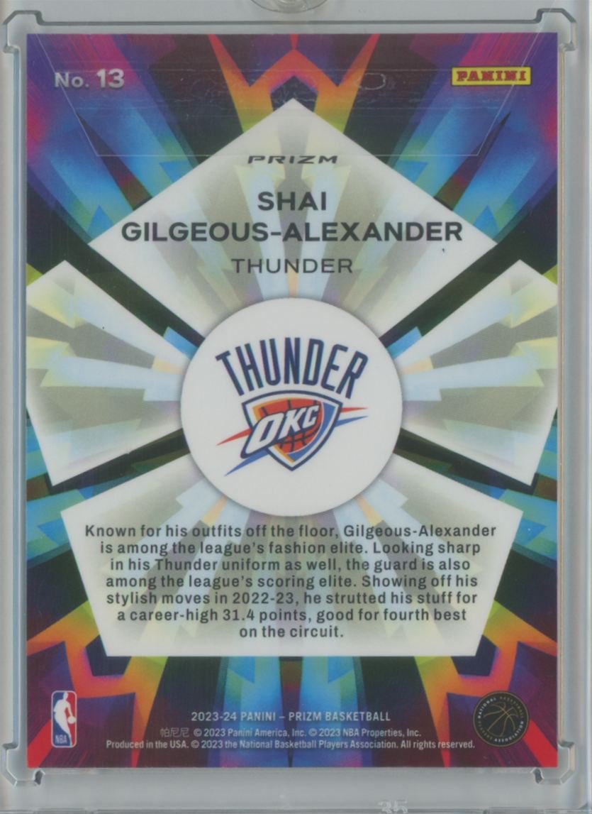 2023 Panini Prizm Kaleidoscopic Shai Gilgeous-Alexander 13 card from the Oklahoma City Thunder.