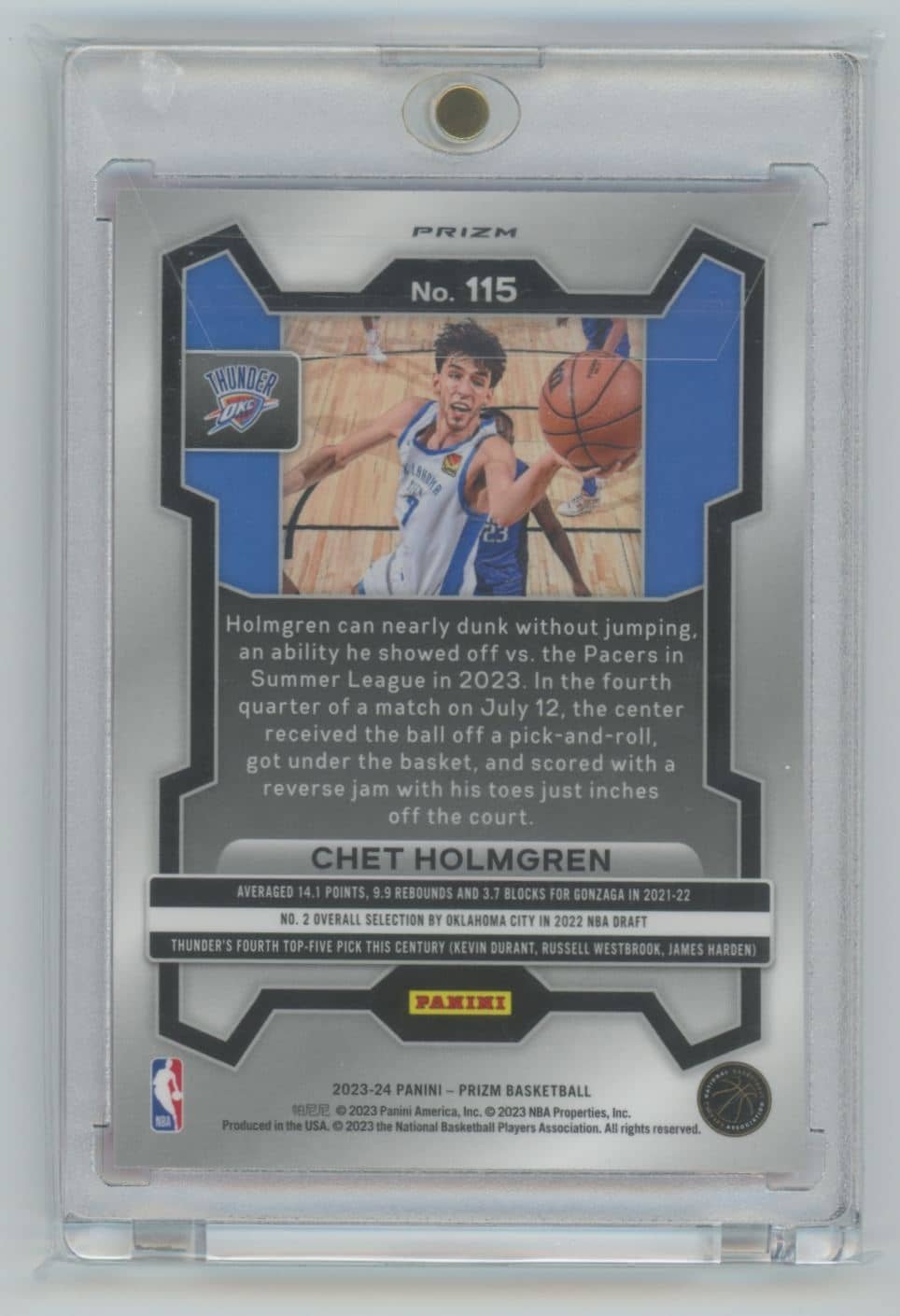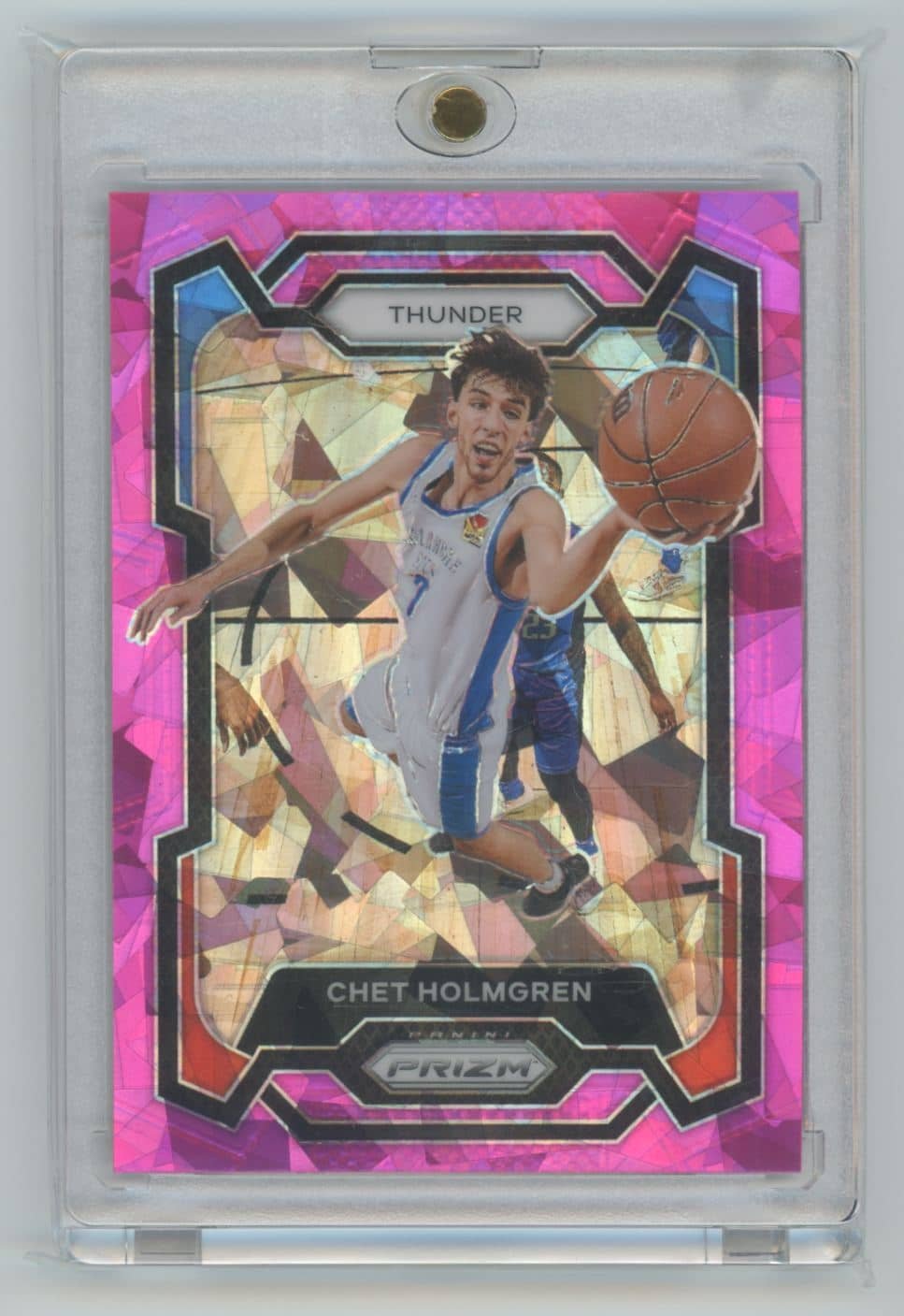 2023 Panini Prizm Pink Ice Chet Holmgren 115 card from the Oklahoma City Thunder.