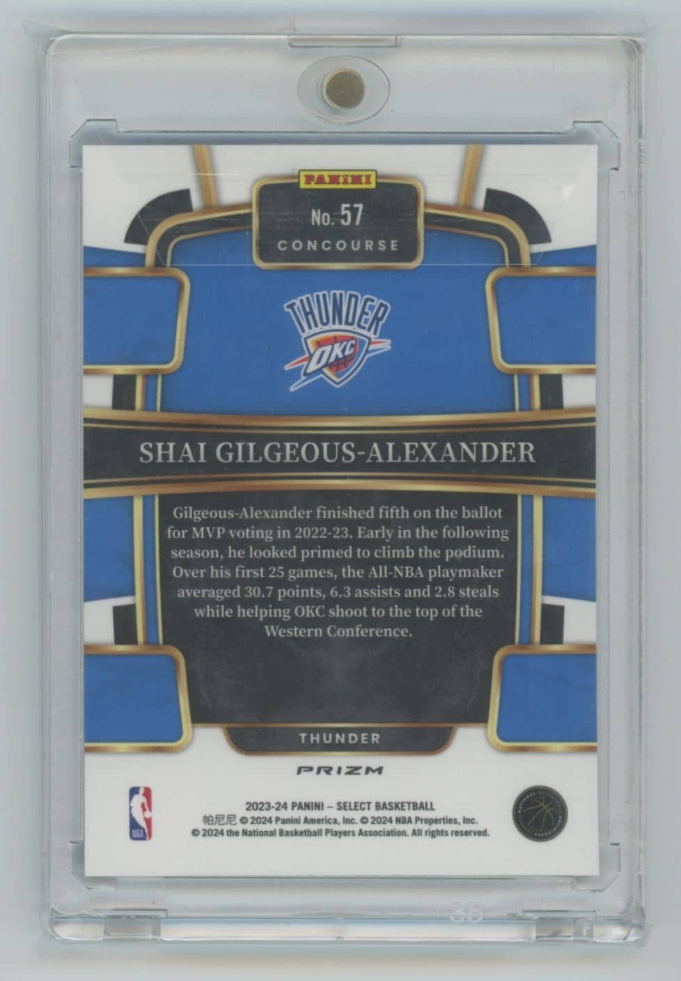2023 Panini Select Blue Prizm Shai Gilgeous-Alexander 57 card from the Oklahoma City Thunder.