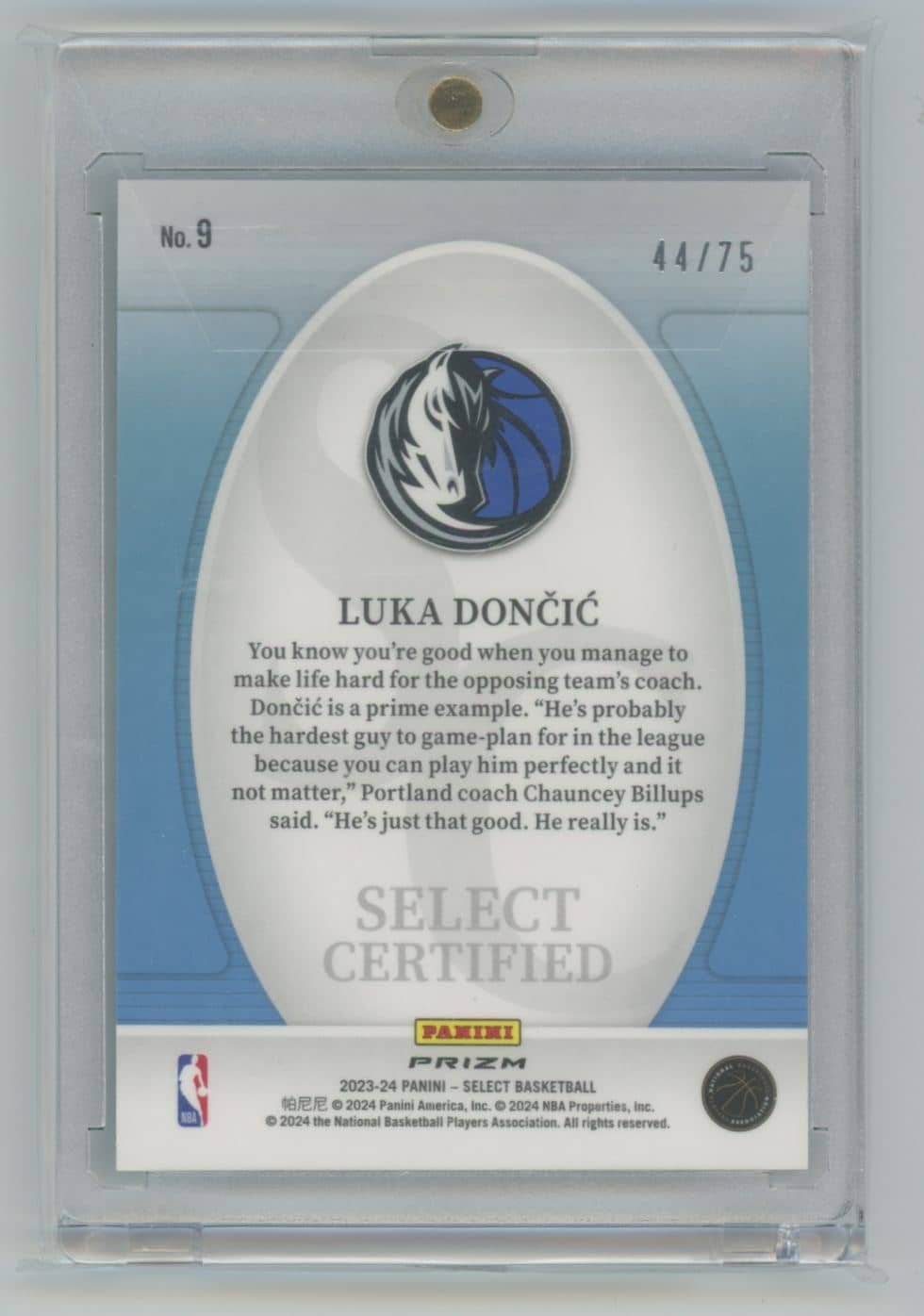 2023 Panini Select Purple Ice Luka Doncic 9 44/75 featuring Luka Doncic from the Dallas Mavericks. Card #9.