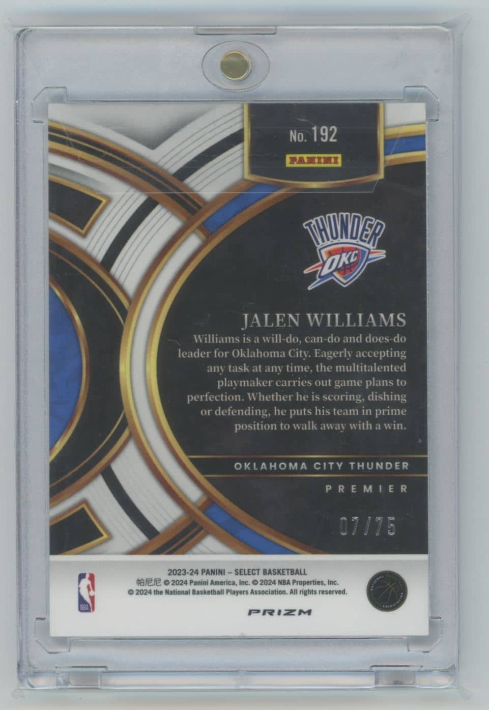 2023 Panini Select White Disco Jalen Williams 192 07/75 card from the Oklahoma City Thunder. Serial numbered 007/75.
