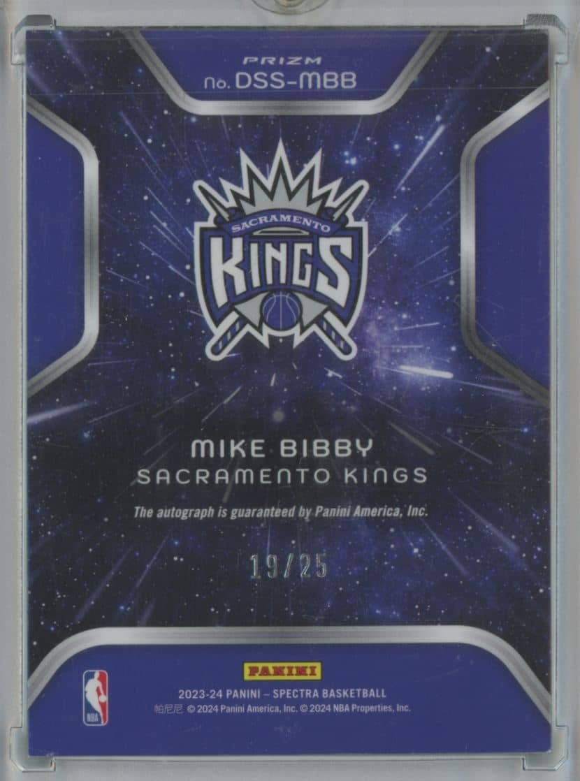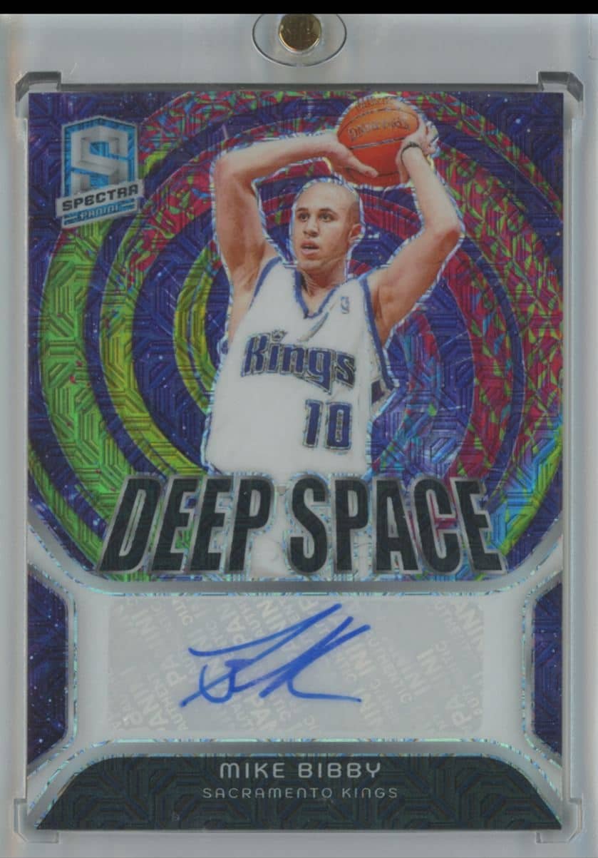 2023 Panini Spectra Deep Space Signatures Meta Mike Bibby DSS-MBB autographed 19/25 featuring Mike Bibby from the Sacramento Kings. Card #DSS-MBB.