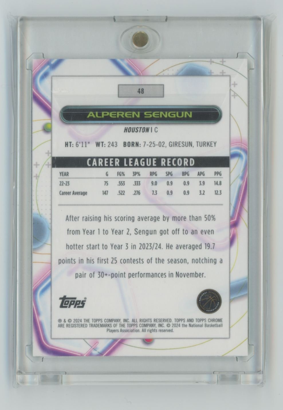 2023 Topps Chrome Cosmic Alperen Sengun 48 card from the Houston Rockets.