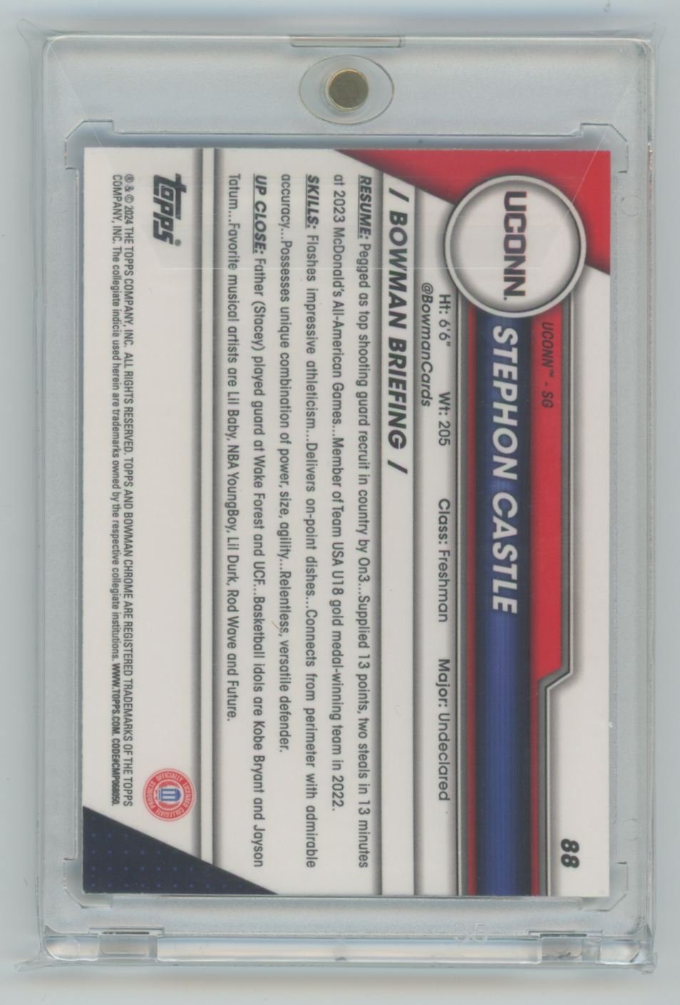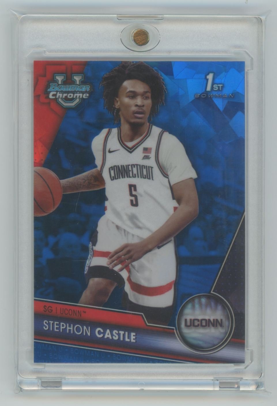 2024 Bowmn U Sapphire Stephon Castle 88 card from the San Antonio Spurs.
