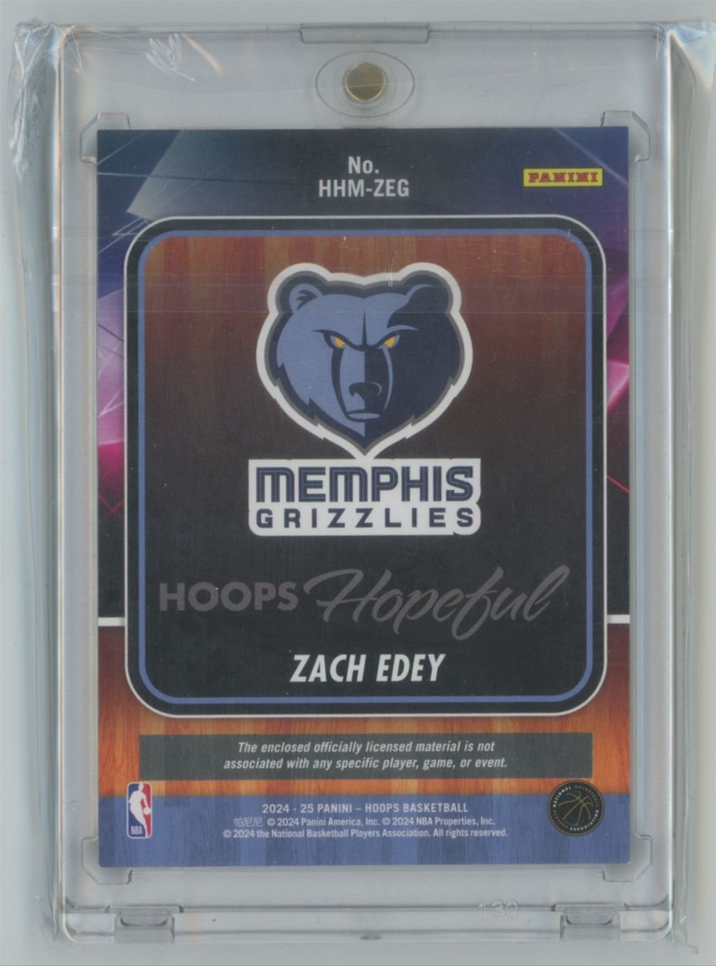 2024 Hoops Hopeful Memorabilia Zach Edey HHM-ZEG card from the Memphis Grizzlies.