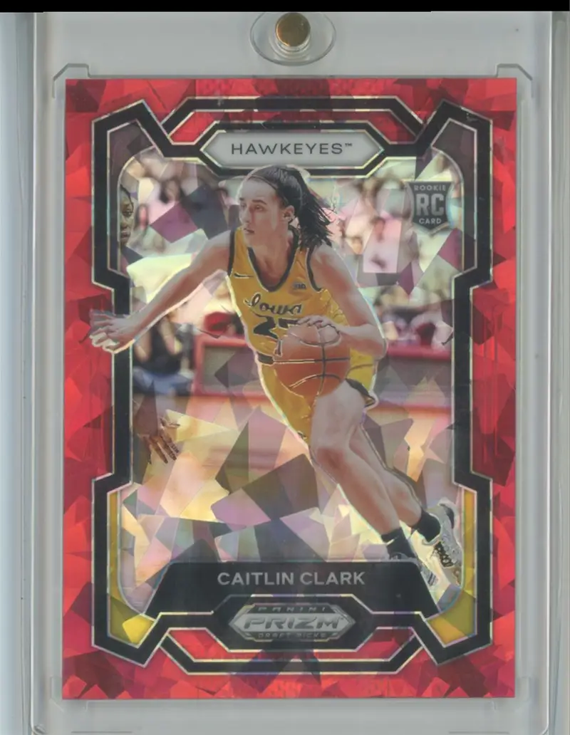 2024 Panini Draft Picks Red Ice Prizm Caitlin Clark 57 rookie card from the Indiana Fever.