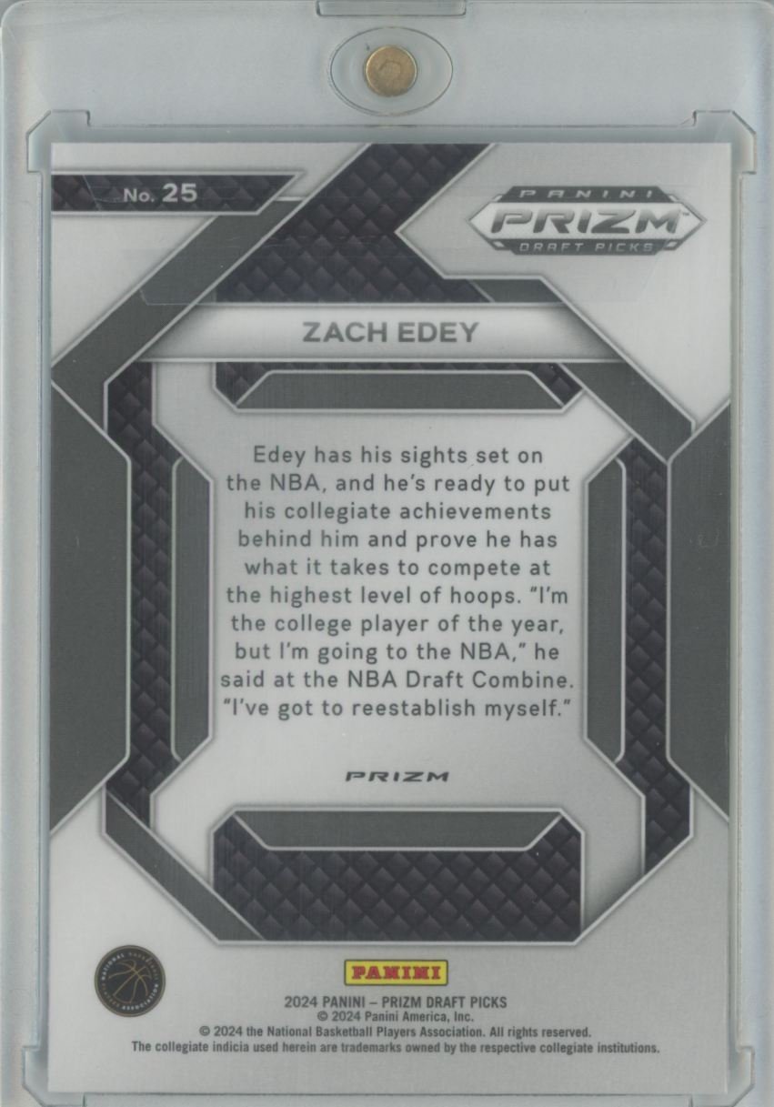 2024 Panini Prizm Draft Picks Cracked Ice Zach Edey 25 rookie card from the Memphis Grizzlies.
